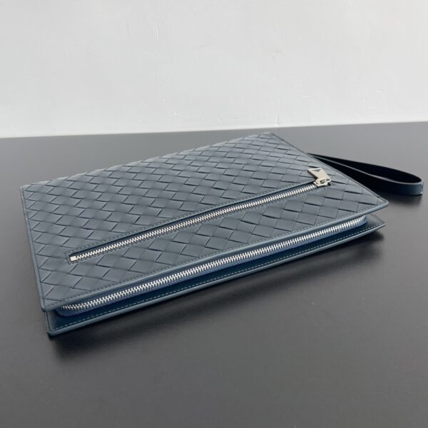 부드러운 소가죽으로 제작된 이 손가방은 BV의 클래식 편직 디자인이 돋보입니다.