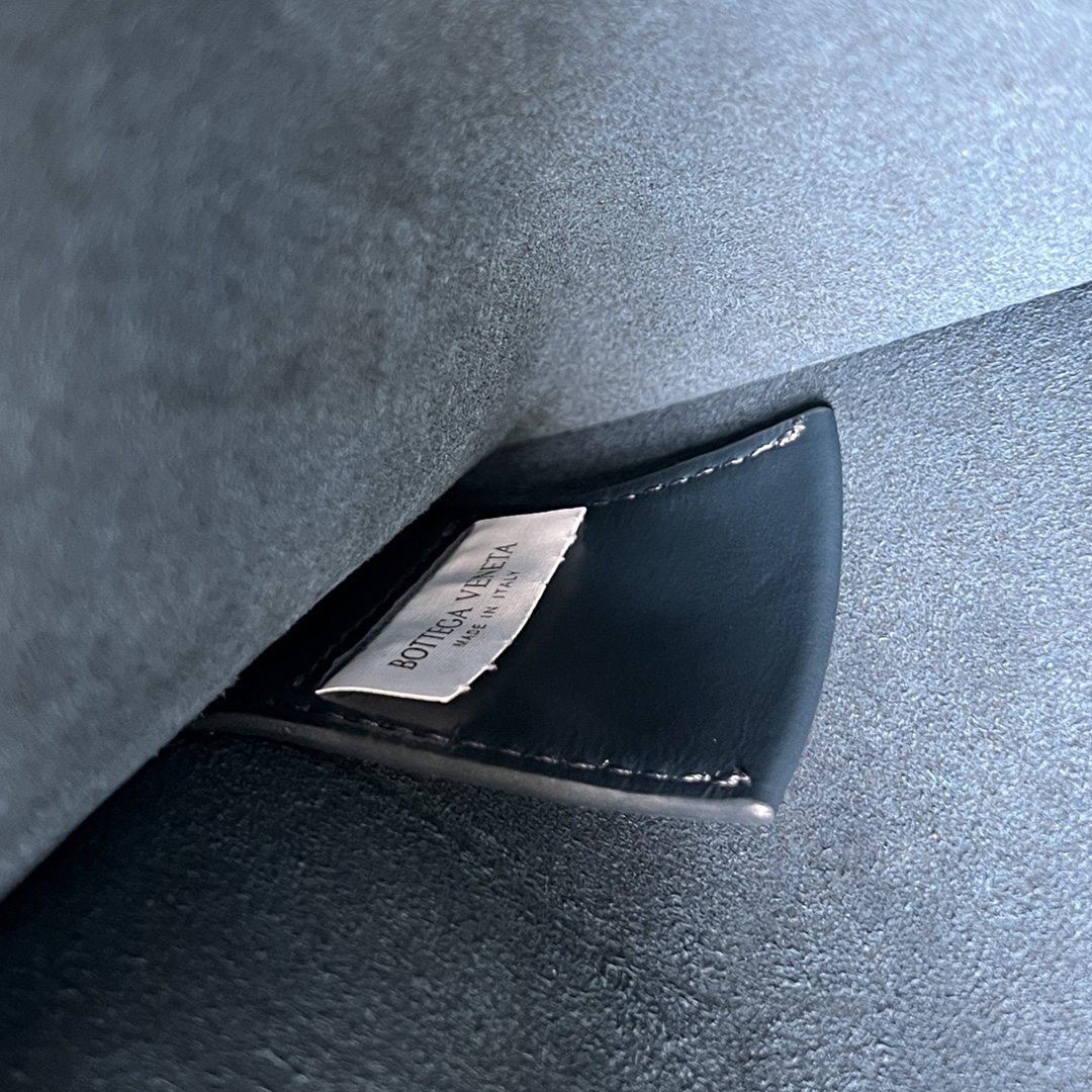 부드러운 소가죽으로 제작된 이 손가방은 BV의 클래식 편직 디자인이 돋보입니다.