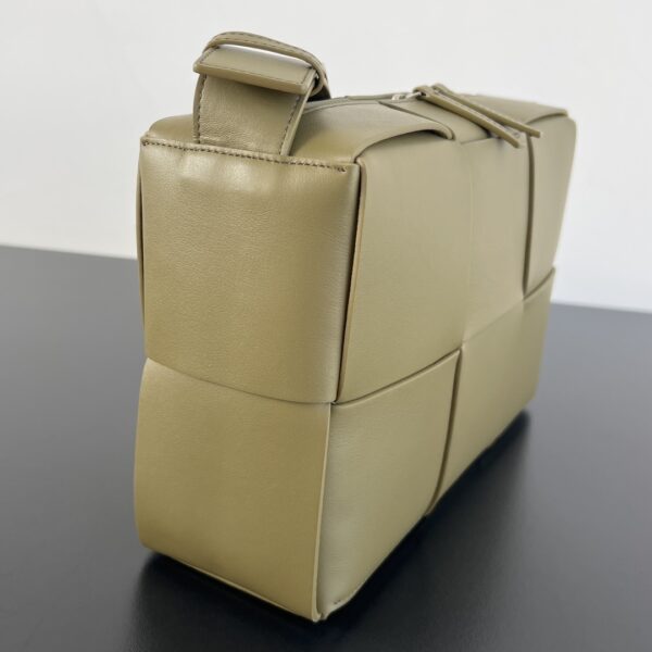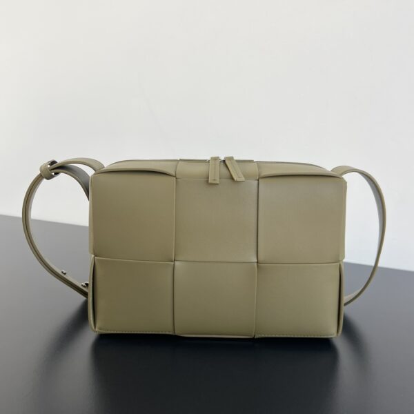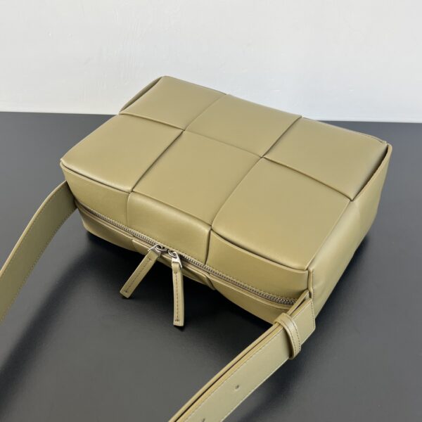 고급스러운 대형 편직 소가죽으로 제작된 카메라백입니다. 광택이 뛰어나면서도 내구성이 강해 일상에서 활용하기 좋습니다.