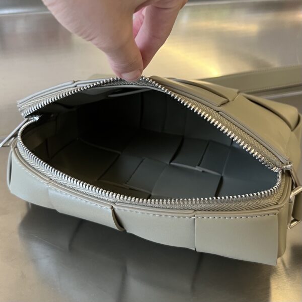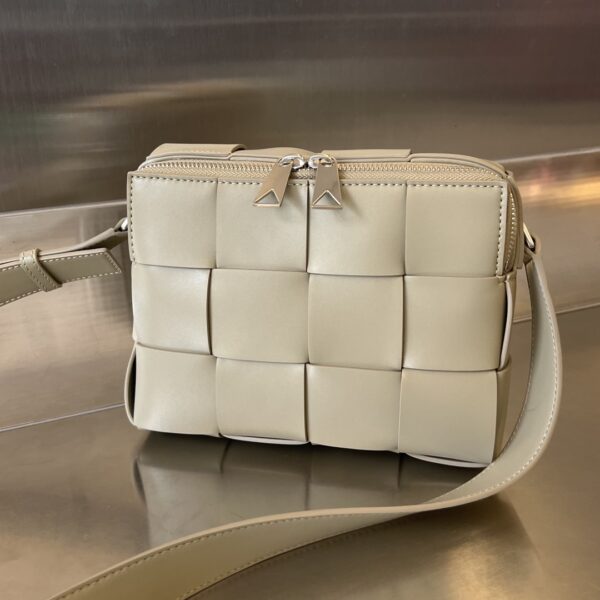 고급스러운 대형 편직 소가죽으로 제작된 카메라백입니다. 광택이 뛰어나면서도 내구성이 뛰어난 소재로, 실용성과 스타일을 동시에 갖추었습니다.