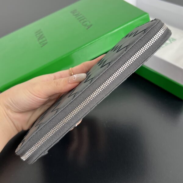 부드럽고 편안한 질감의 소가죽으로 제작된 편직 지갑입니다.