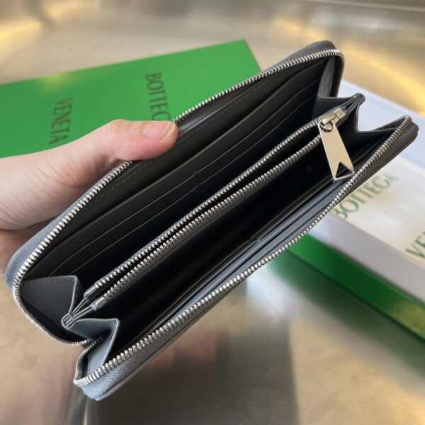 내부는 세심하게 구분된 공간과 고품질의 안감으로 구성되어 있어 내구성과 정돈된 수납이 가능합니다. 현금, 카드, 기타 소지품을 깔끔하게 보관할 수 있어 실용적입니다.