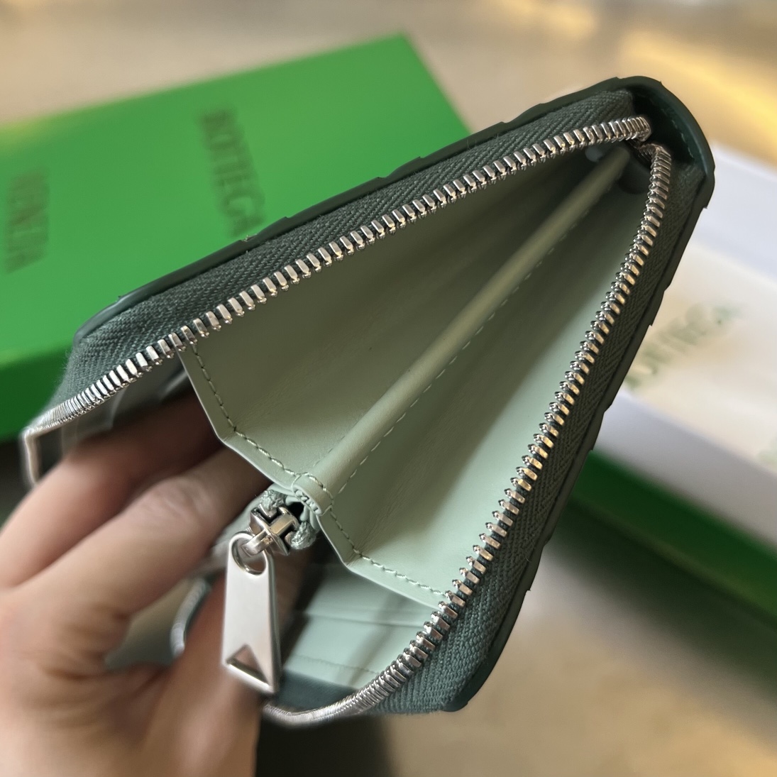 보테가 (징) 남성 편직 지갑 클래식 소가죽 그린 593217