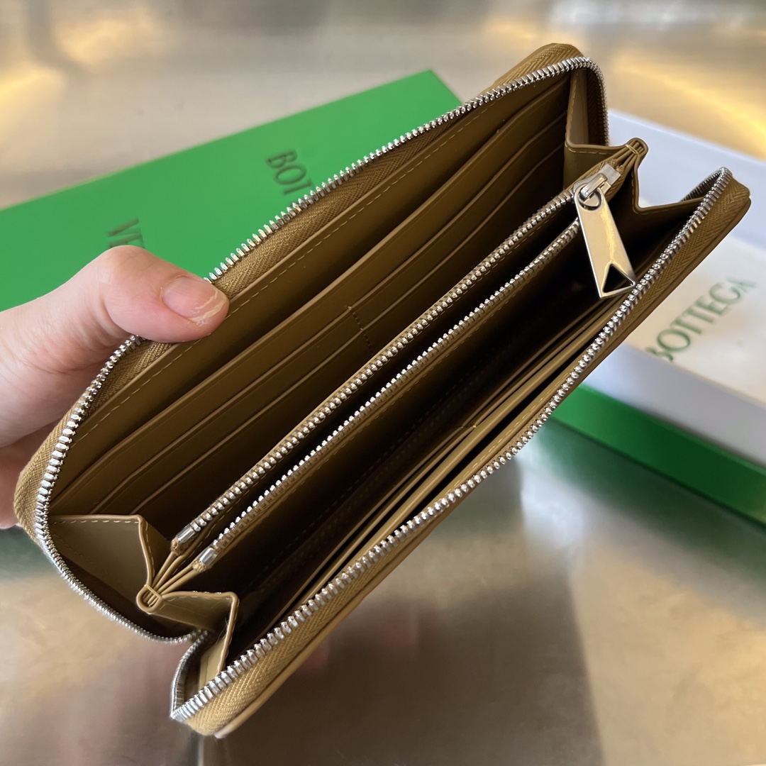 보테가 (징) 남성 편직 지갑 클래식 소가죽 제작 부드럽고 편안한 느낌 카키 593217