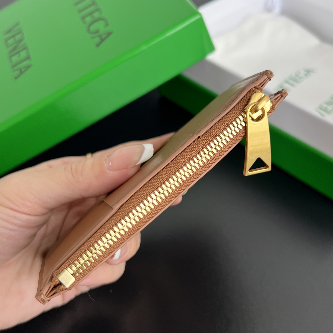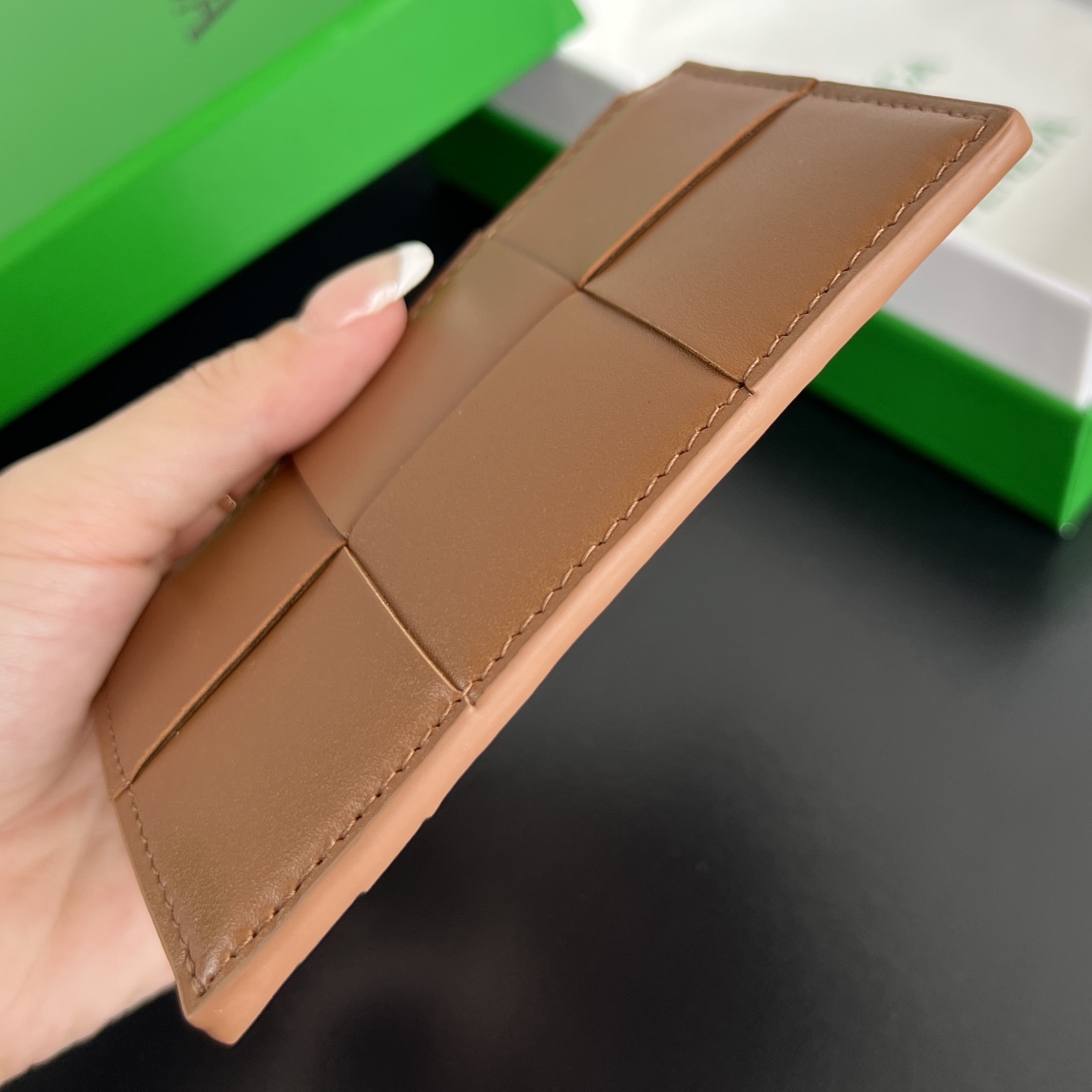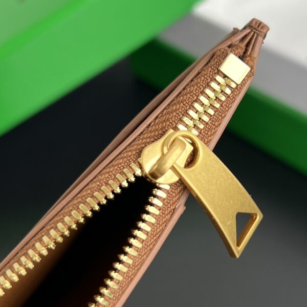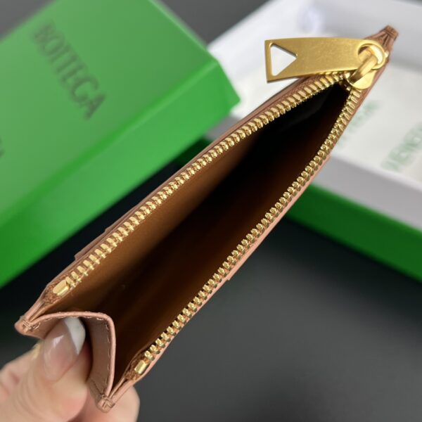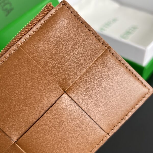 보테가의 대형 직조 지퍼 카드 지갑은 실용성과 스타일을 모두 갖춘 아이템입니다. 50% 양가죽과 50% 소가죽의 조합으로 부드럽고 고급스러운 촉감을 자랑합니다.