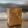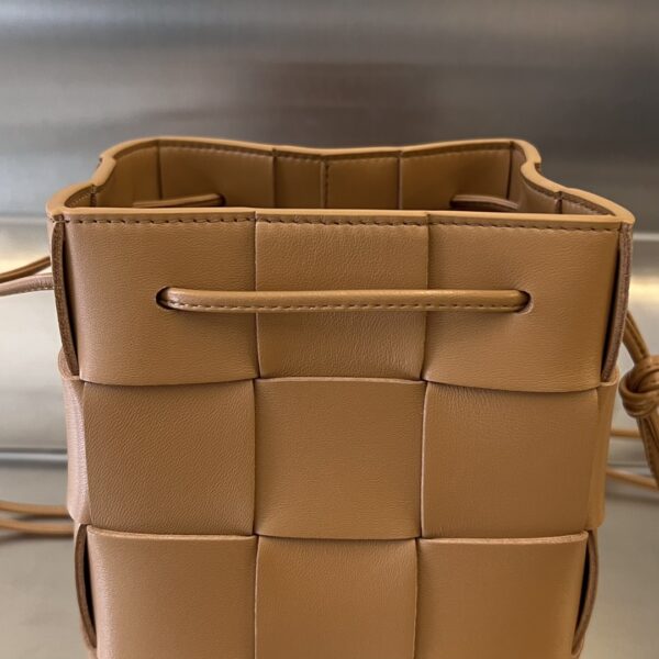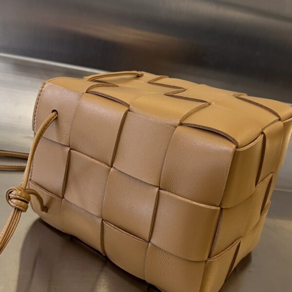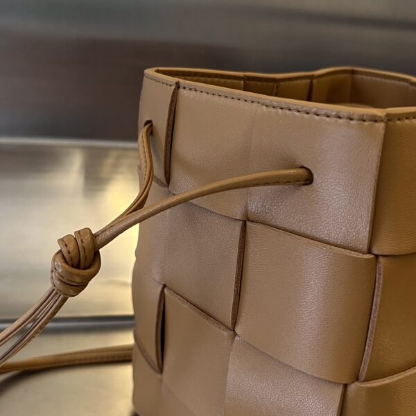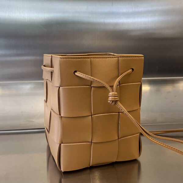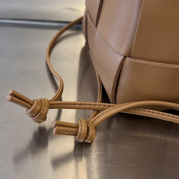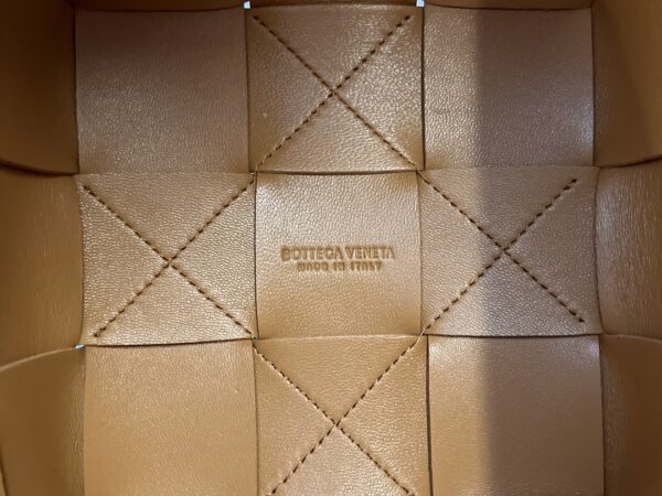 보테가의 대형 콤비 물통백은 클래식한 엮음 디자인과 추리닝 스타일이 조화를 이루어 더욱 매력적입니다.