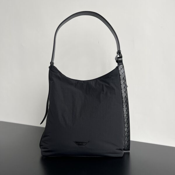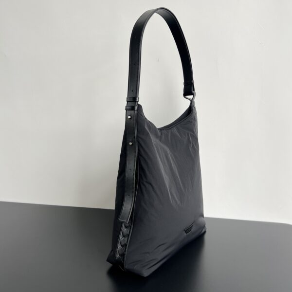 부드러운 나일론 소재로 제작된 대형 크로스로드 호보백입니다. 가벼운 종이 같은 질감이 특징이며, 가죽 디테일이 더해져 전체적인 라인이 더욱 완벽하게 표현됩니다.