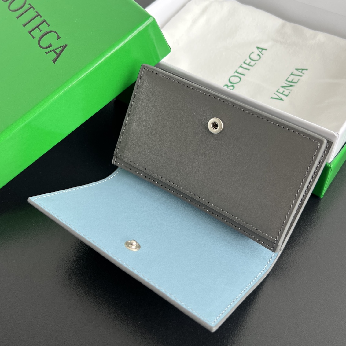 보테가 (징) 대형 편직 명함 지갑 소가죽 그레이 679849