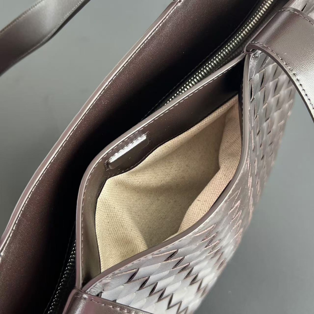 부드러운 소가죽으로 제작된 대형 편직 지퍼 토트백입니다. 클래식한 편직 공법과 실용적인 디자인이 조화를 이루어, 세련된 느낌을 줍니다.