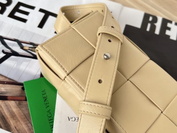 부드러운 유약 소가죽 소재로 제작된 더 벨트 카세트 백은 가벼운 무게감과 고급스러운 광택이 특징입니다.