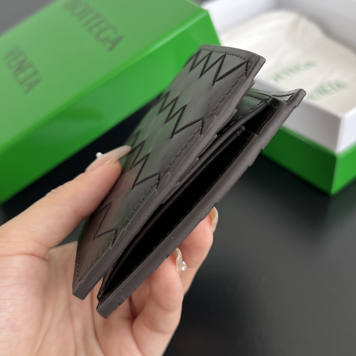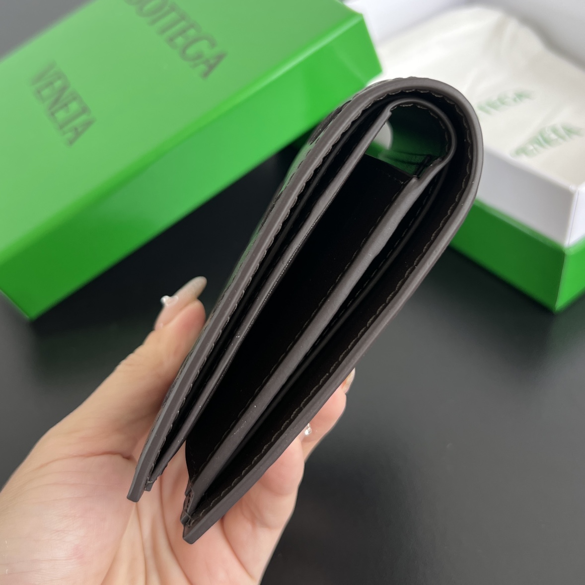 4개의 카드 슬롯과 2개의 지폐 수납 공간, 1개의 동전 주머니가 있어 실용성이 뛰어납니다.