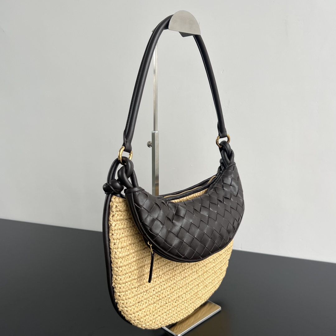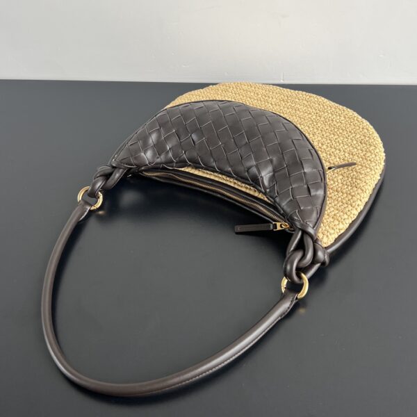 라피아 소재와 양가죽이 조화를 이루는 젬멜리 손가방입니다.