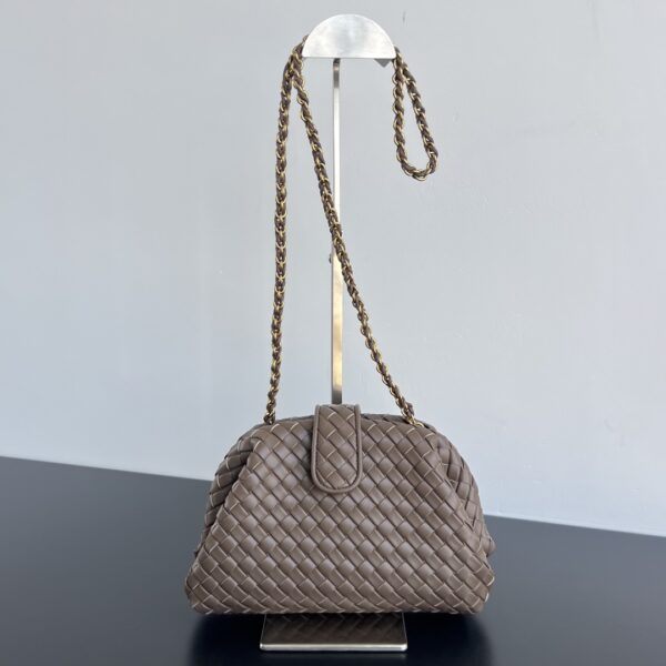 고대 로마 건축에서 영감을 받은 이 가방은 상징적인 인트레치아토 소가죽으로 제작되어 고급스러운 질감을 자랑합니다. 하드 프레임과 체인 디자인이 결합되어 일상적인 사용에 적합합니다.