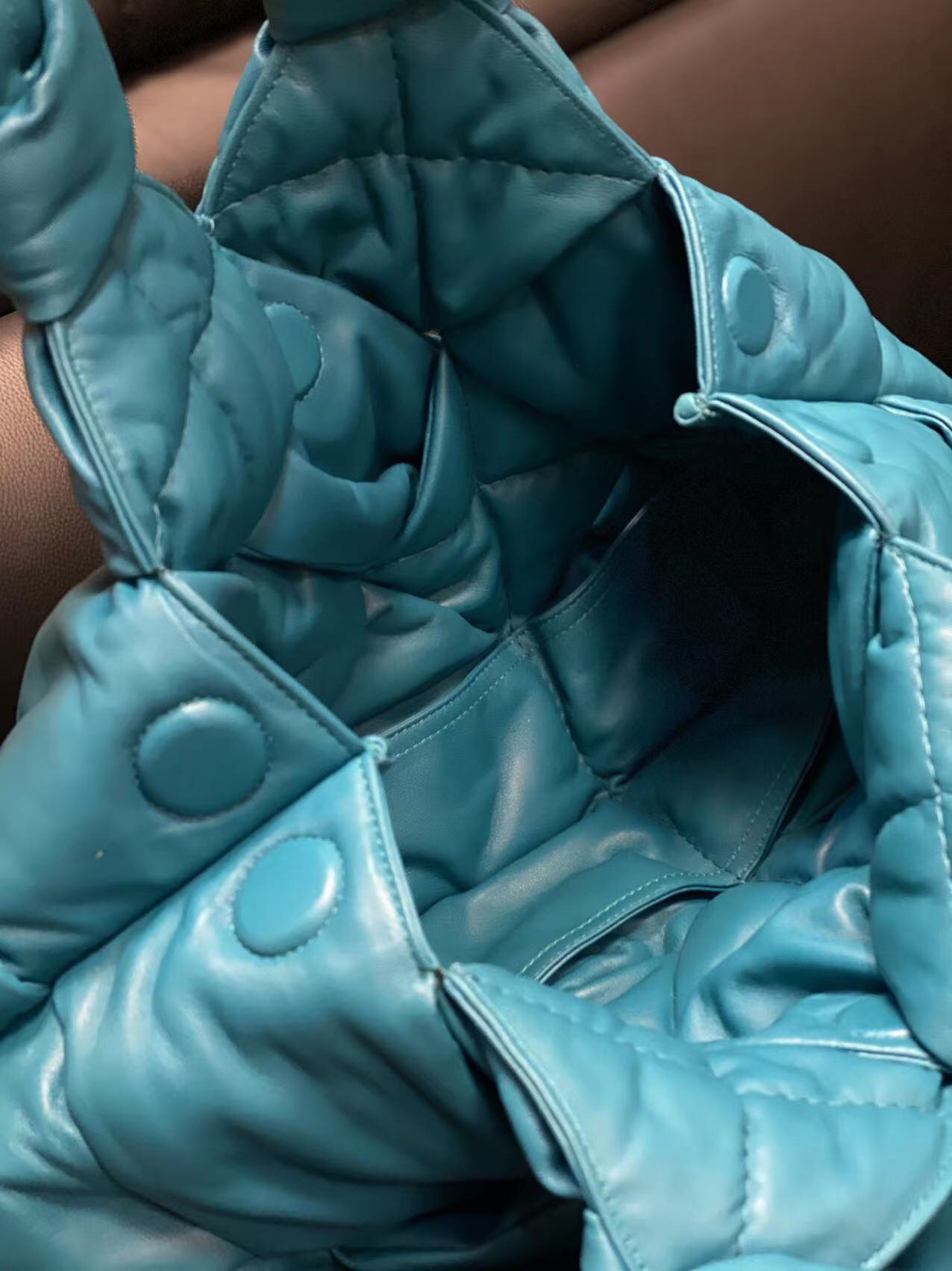 부드러운 양가죽으로 제작된 로프 넷 토트백입니다. 독특한 짜임과 부드러운 질감이 특징으로, 손에 쥐었을 때 실크처럼 매끄러운 느낌을 줍니다.