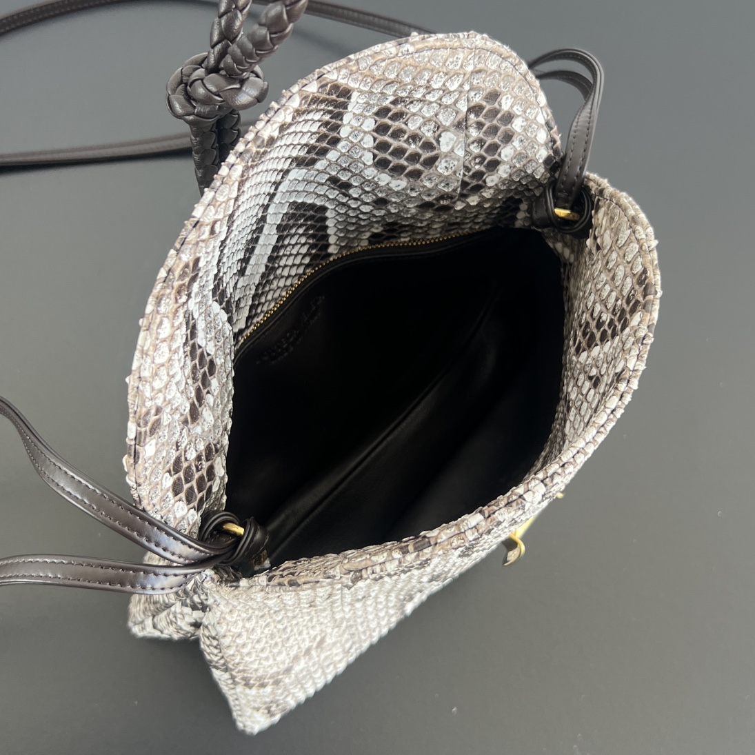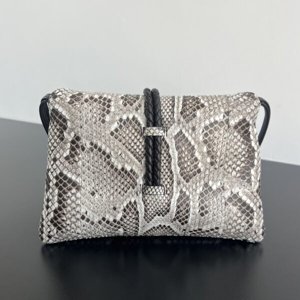 고급스러운 뱀피 소재로 제작된 리베르타 숄더백입니다. 베트남에서 수입한 뱀피는 세밀한 비늘과 화려한 색감으로 독특한 질감을 자랑합니다.