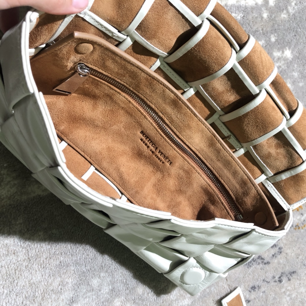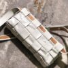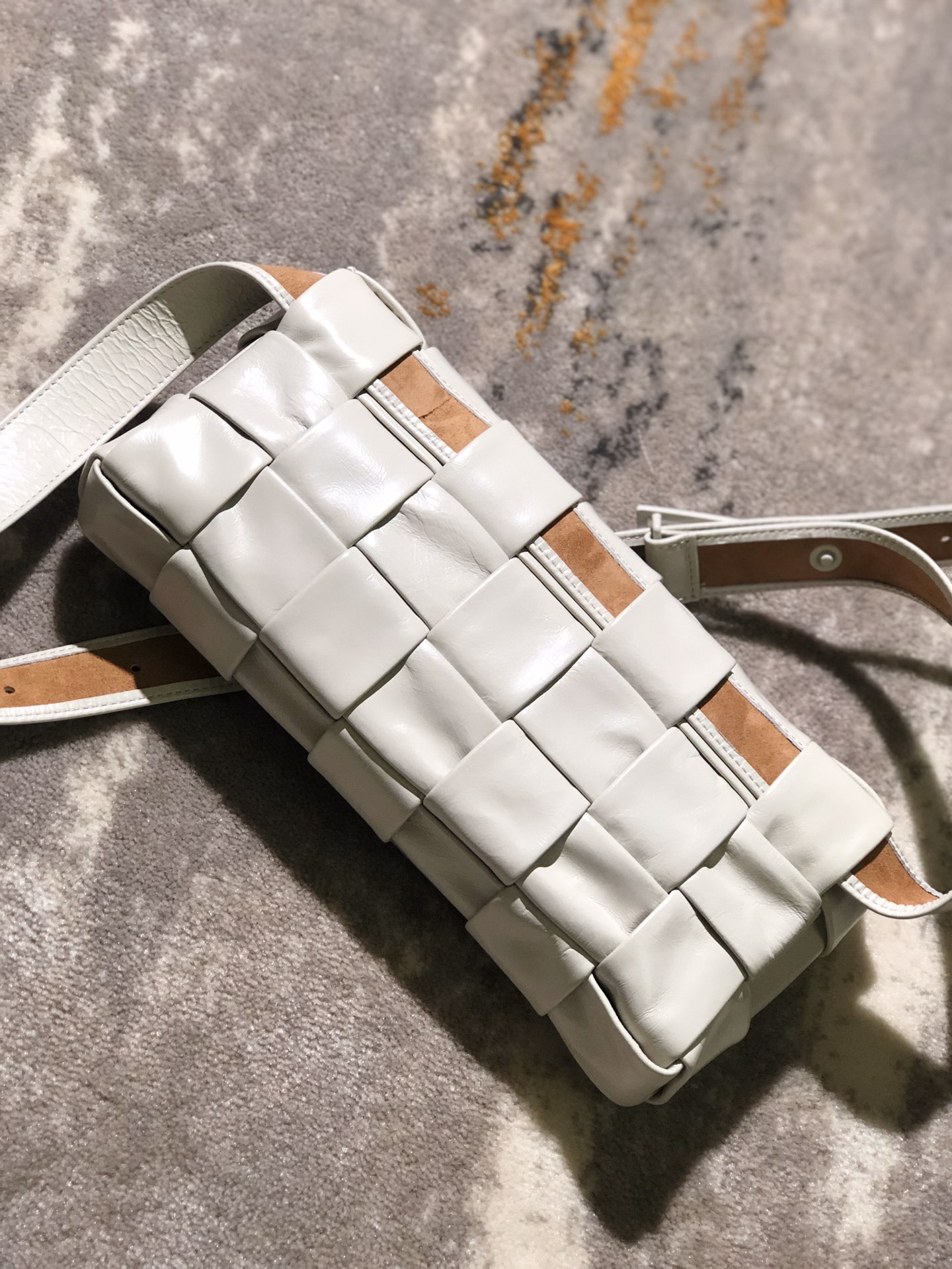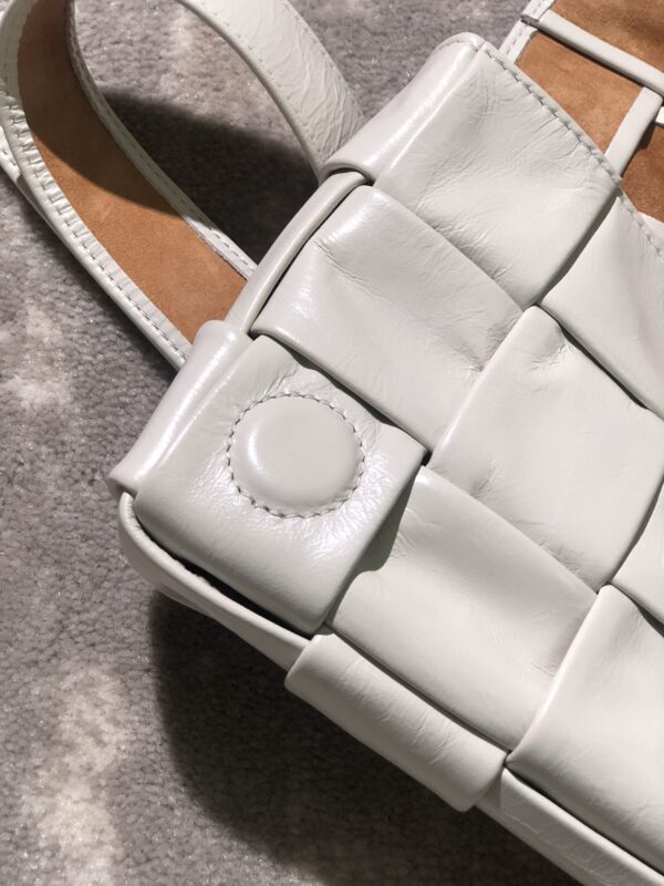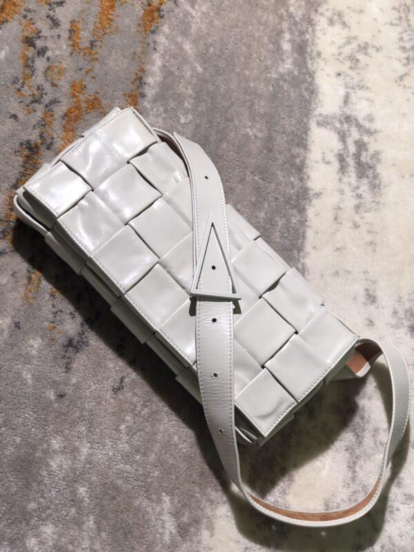 보테가의 마법 큐브 편직백은 독특한 디자인으로 다양한 착용 방식을 제공합니다. 어깨끈은 간결한 삼각형 디자인으로, 크로스백, 허리백, 손잡이백으로 활용할 수 있어 실용적입니다.