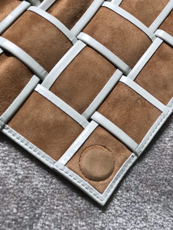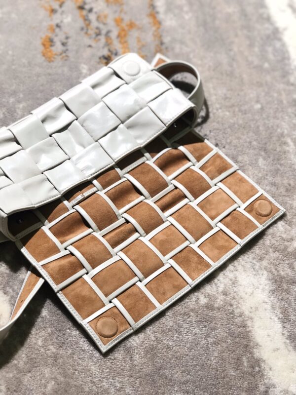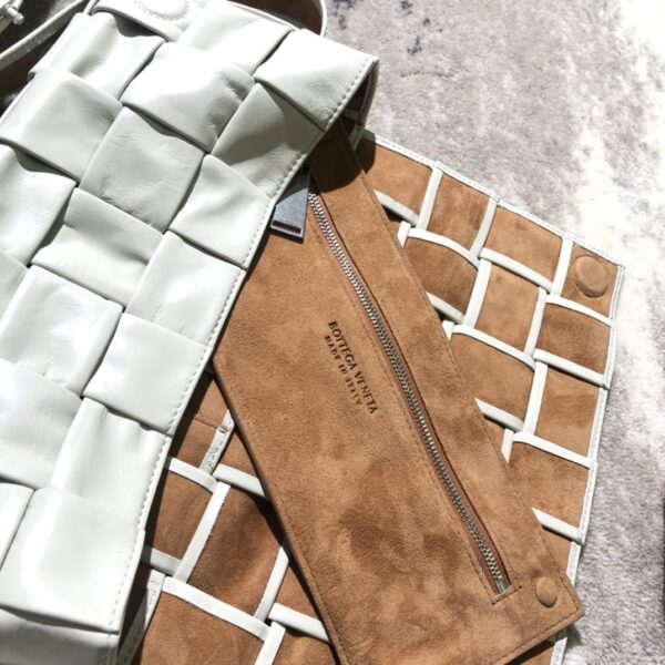 BV의 상징적인 인트레치아토 편직 디자인이 돋보이며, 자석 잠금장치로 편리함을 더했습니다. 소가죽과 스웨이드 안감이 조화를 이루어 고급스러움을 느낄 수 있습니다.