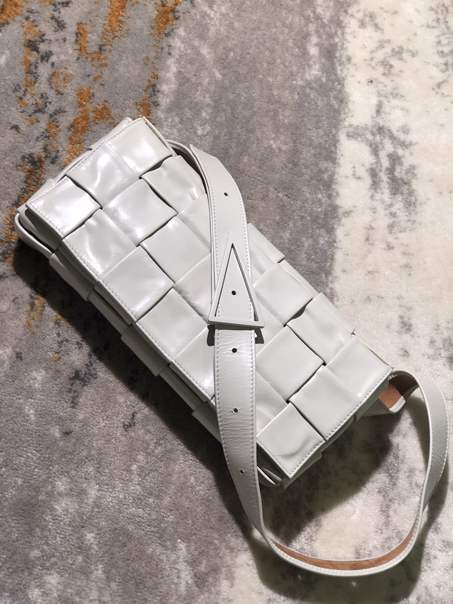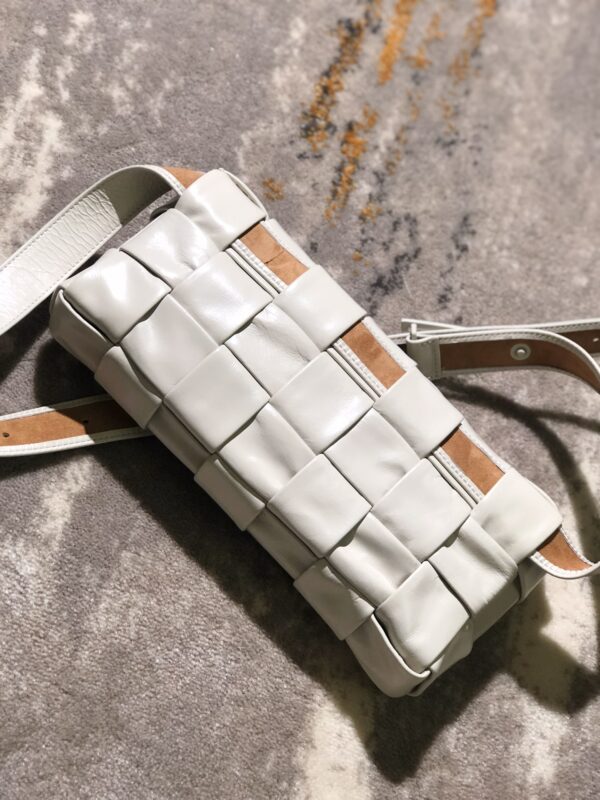 보테가의 마법 큐브 편직백은 독특한 디자인으로 다양한 착용이 가능합니다. 어깨끈은 간편하게 크로스백, 허리백, 손잡이로 활용할 수 있어 실용적입니다.