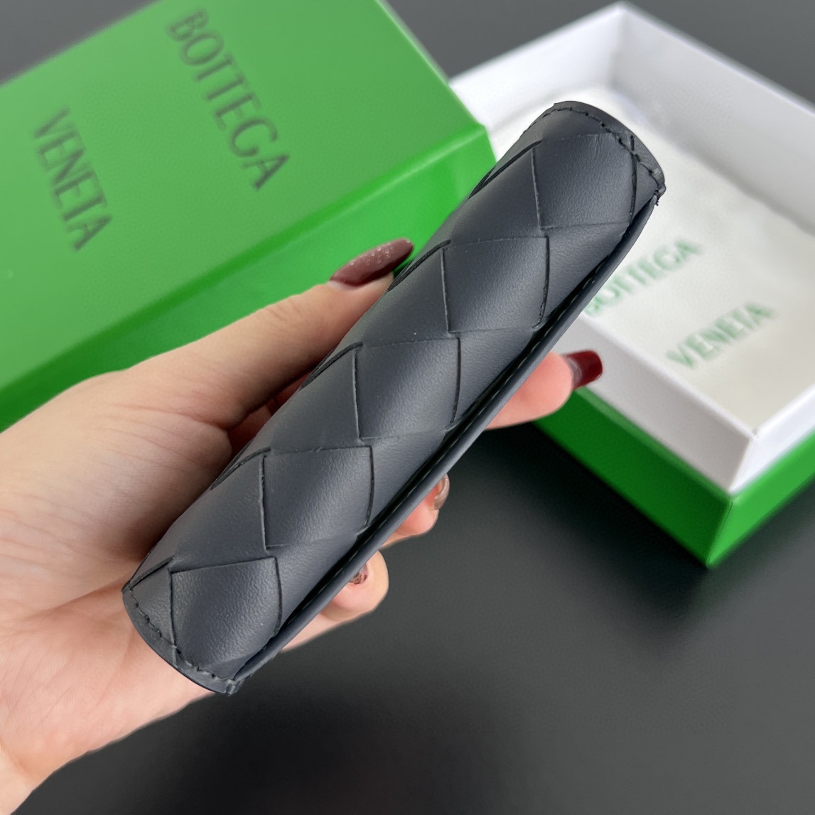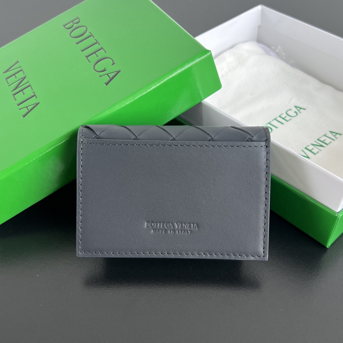 고급스러운 편직 디자인의 명함 지갑입니다. 수입 소가죽 소재로 제작되어 부드럽고 질감이 뛰어납니다.