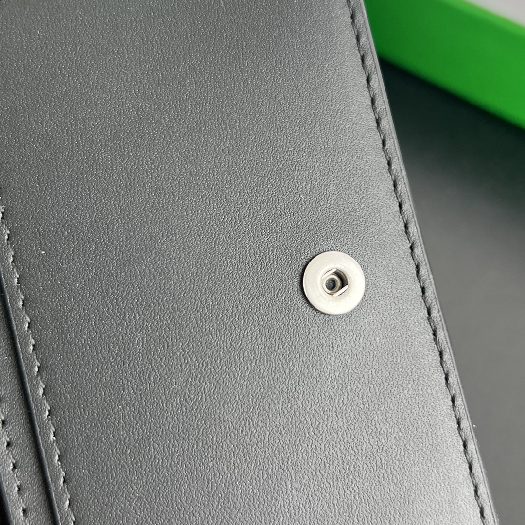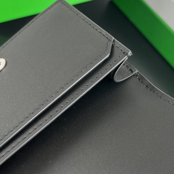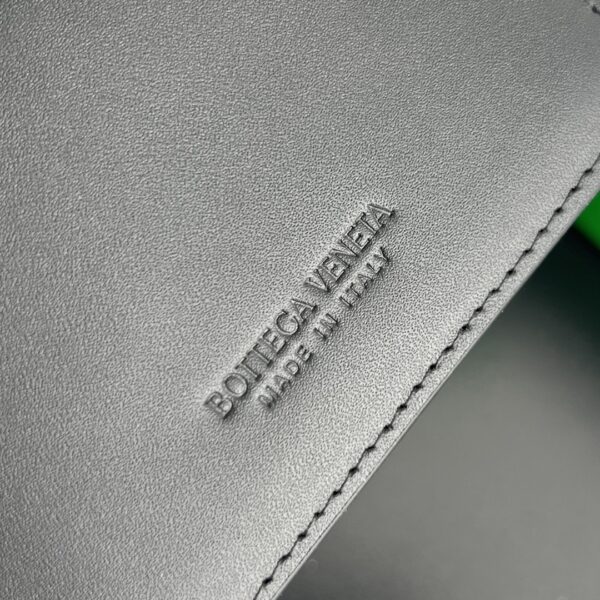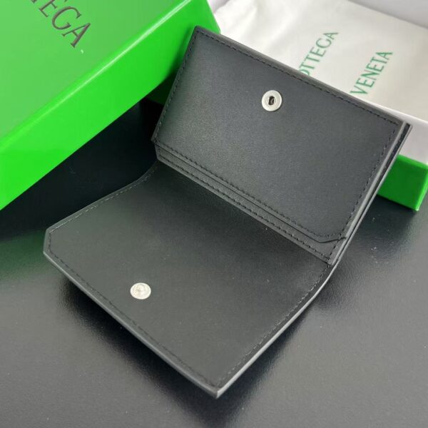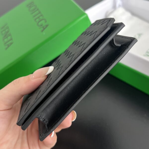 보테가의 새로운 명함 지갑이 돌아왔습니다. 클래식한 세밀한 엮음 디자인이 돋보이며, 오른쪽 하단의 독특한 곡선 디자인이 단조로움을 덜어줍니다.