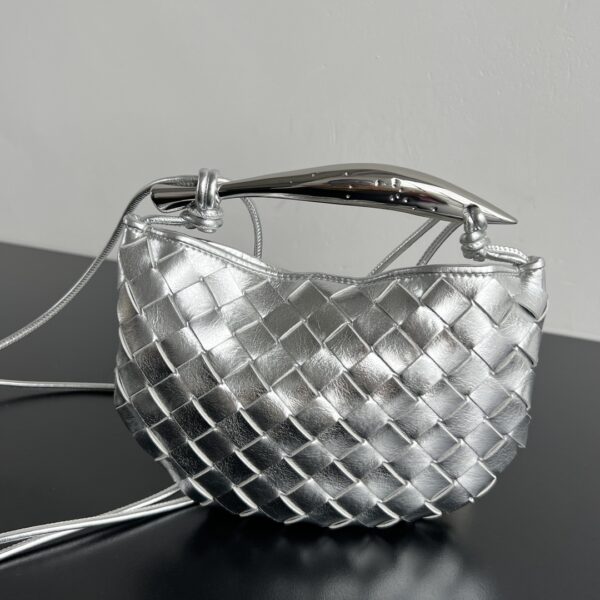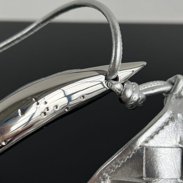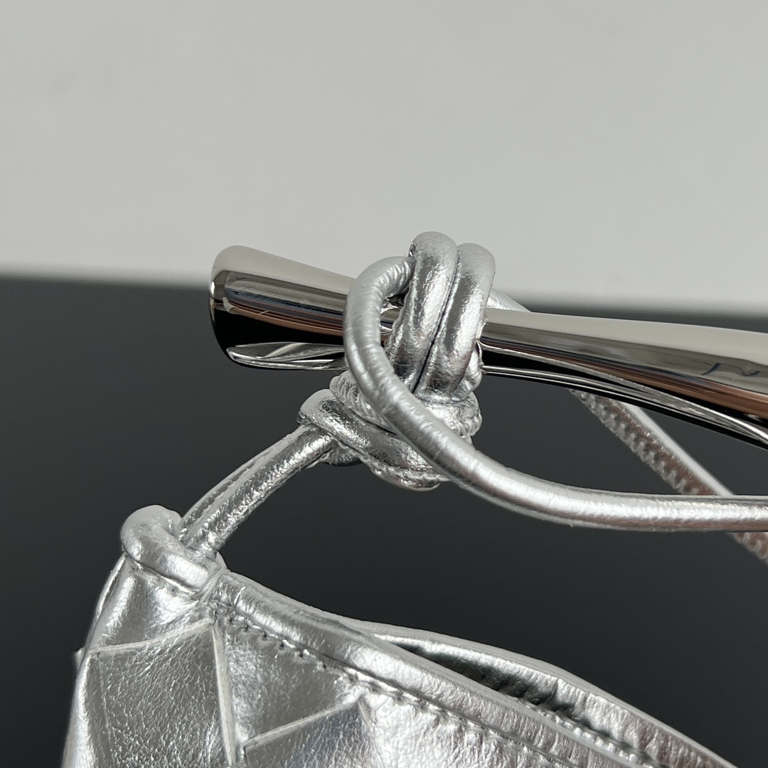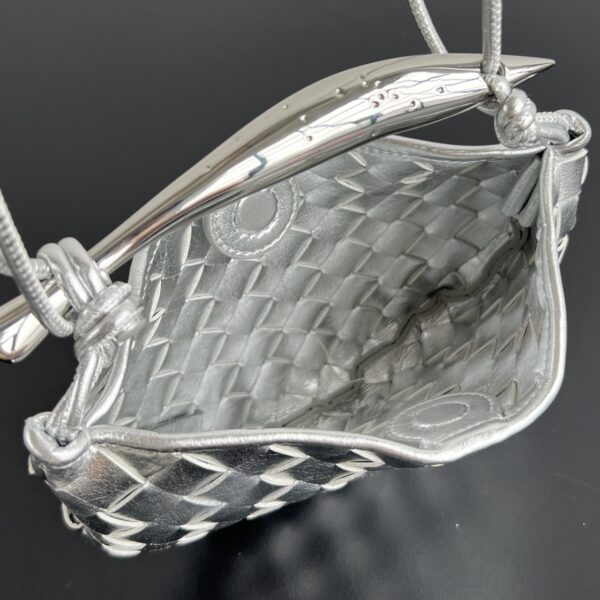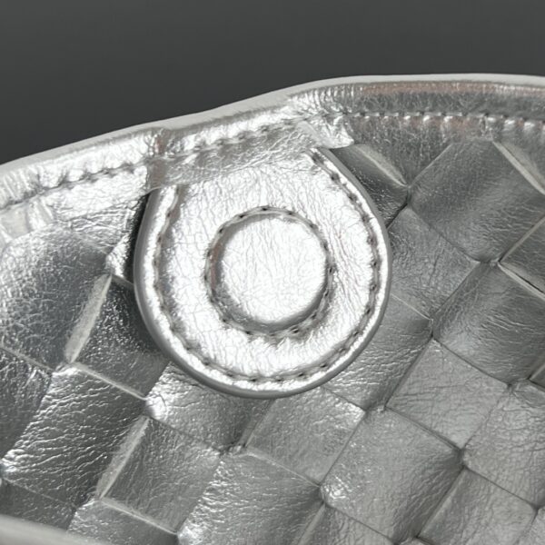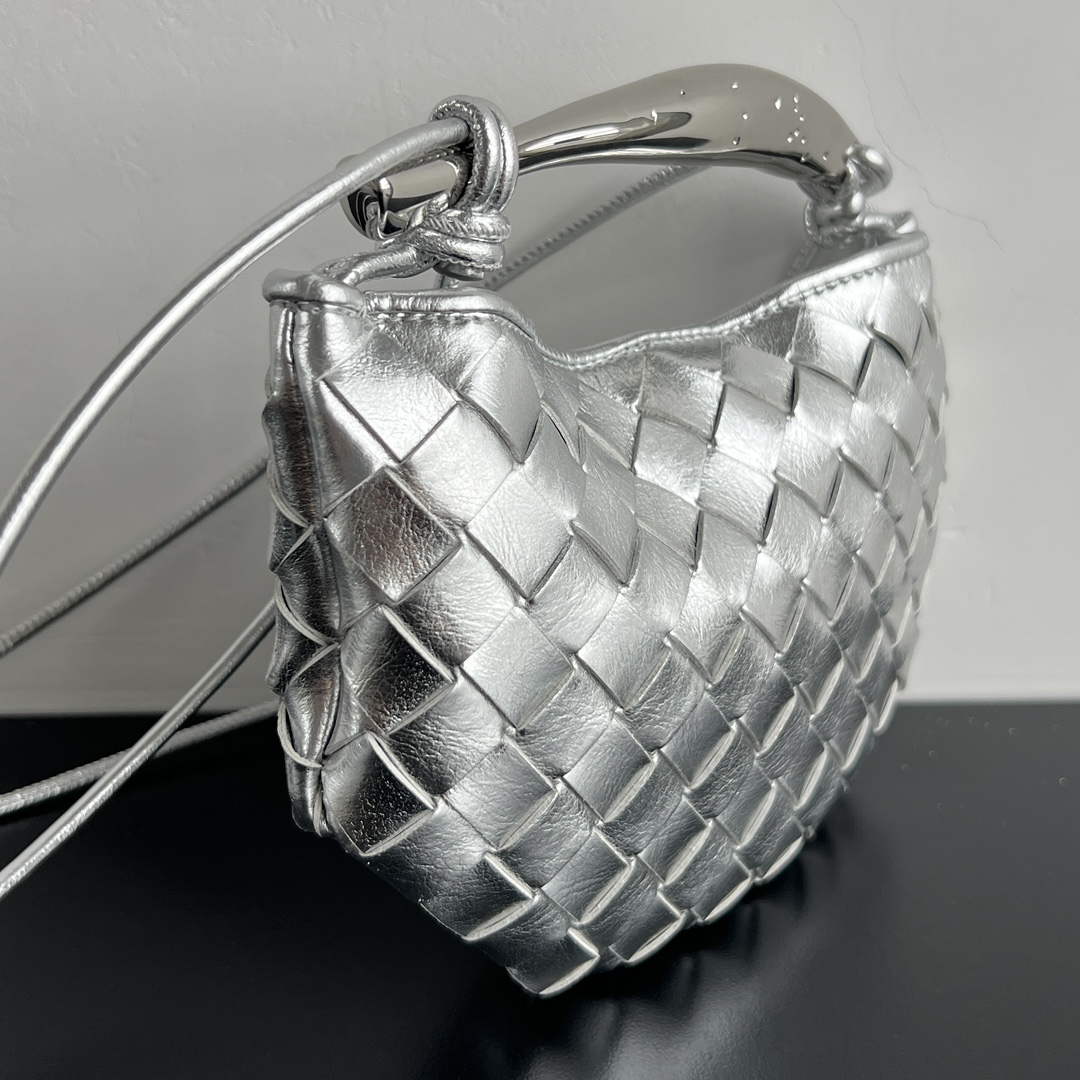 최고급 양가죽으로 제작되어 부드러운 질감과 뛰어난 내구성을 자랑합니다. 메탈 핸들이 독특한 매력을 더하며, 클래식한 엮음 디자인이 예술적이고 우아한 느낌을 줍니다.