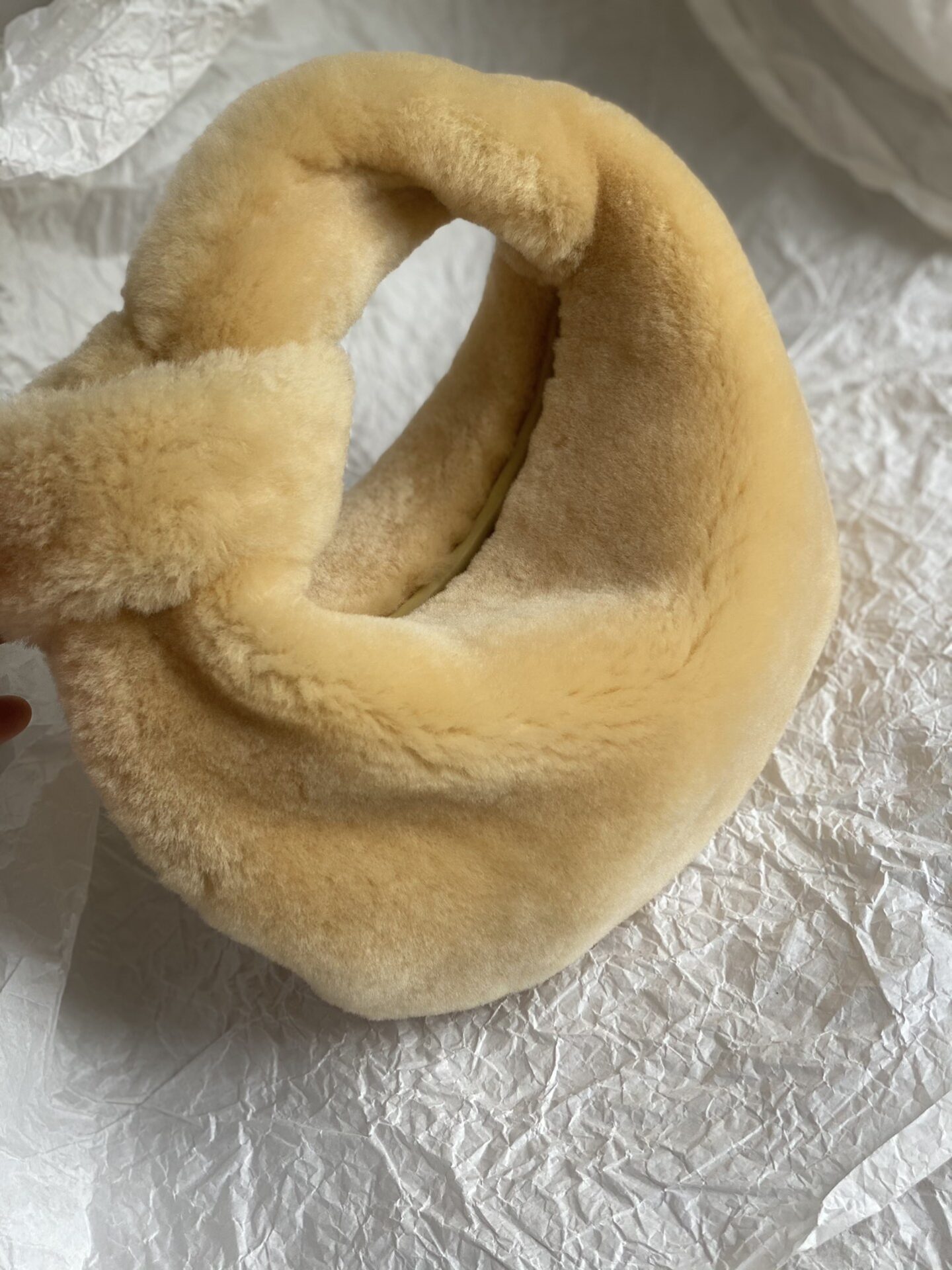부드럽고 섬세한 촉감을 자랑하는 아이스 모헤어 소재로 제작된 미니 조디 백입니다.