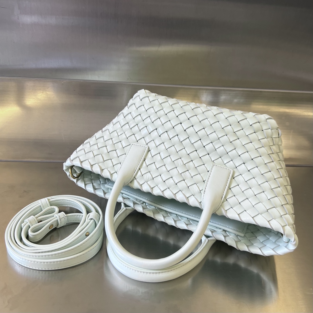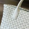 보테가의 미니 카바트는 브랜드 역사상 가장 클래식한 디자인 중 하나입니다. 무봉제의 매끄러운 실루엣은 전통적인 직조 기술을 잘 보여줍니다.