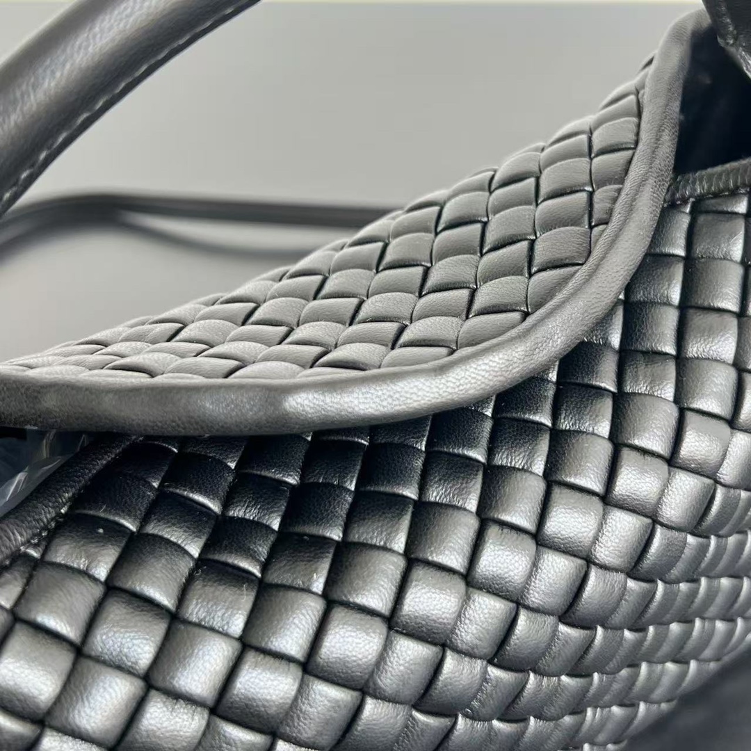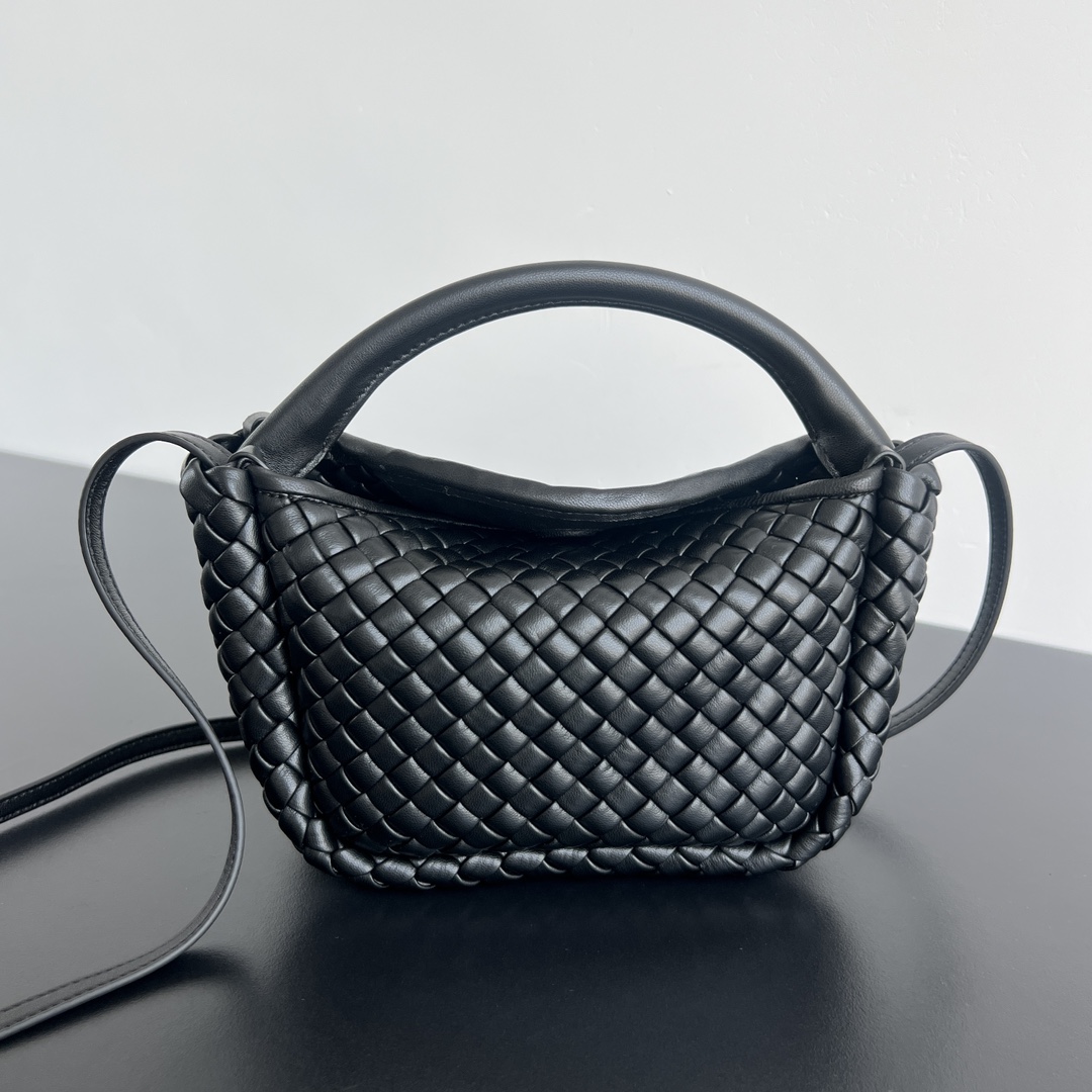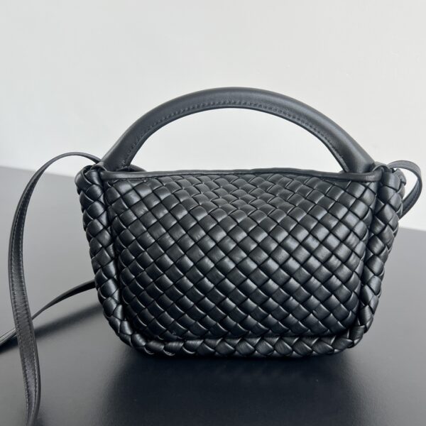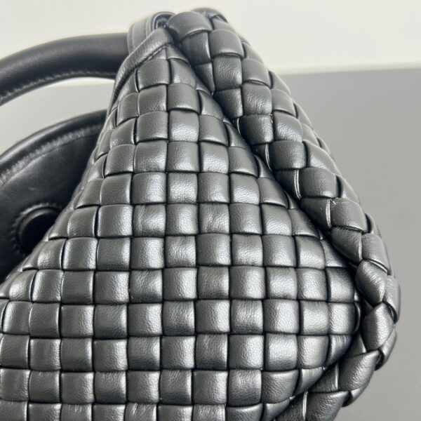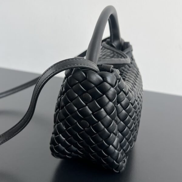 부드러운 양가죽으로 제작된 미니 코블 손잡이백입니다. 섬세한 엮음 디자인이 돋보이며, 실크처럼 매끄러운 질감이 특징입니다.