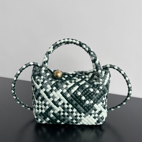 최고급 공예로 제작된 미니 토스카 숄더백/핸드백입니다. 독특한 원형 금색 장식이 더해져 예술 작품과 같은 매력을 지니고 있습니다. 전 세계 한정판으로, 고급 수공예와 독창적인 엮기 기술이 결합되어 있습니다.