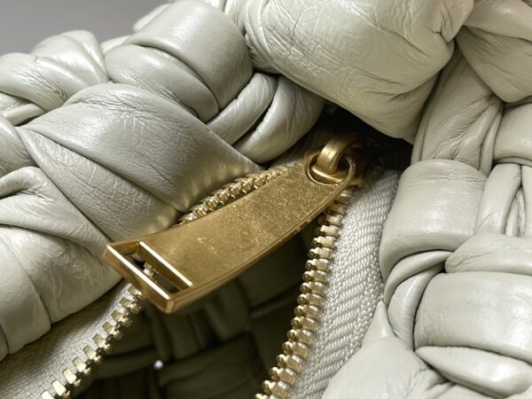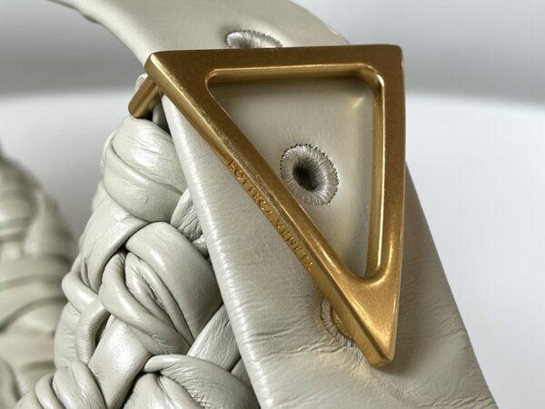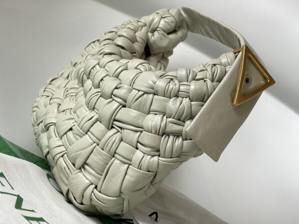 보테가의 바나나 손잡이 가방은 독특한 손편직 디자인이 돋보입니다.