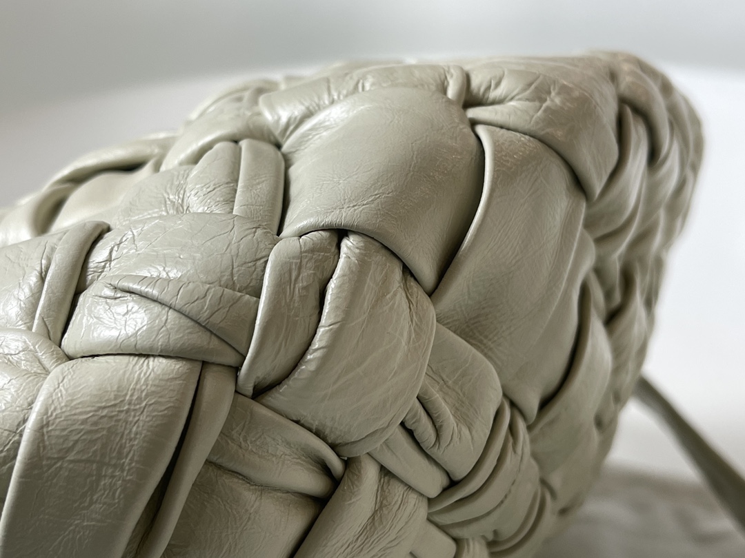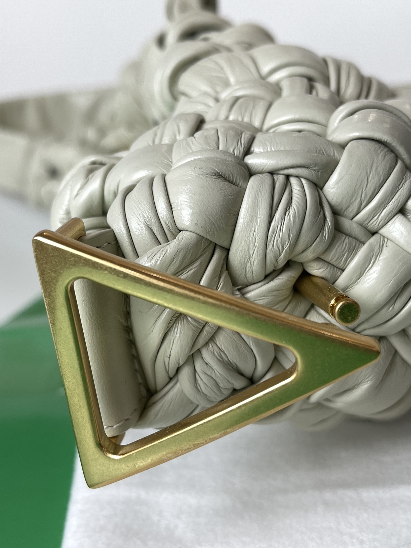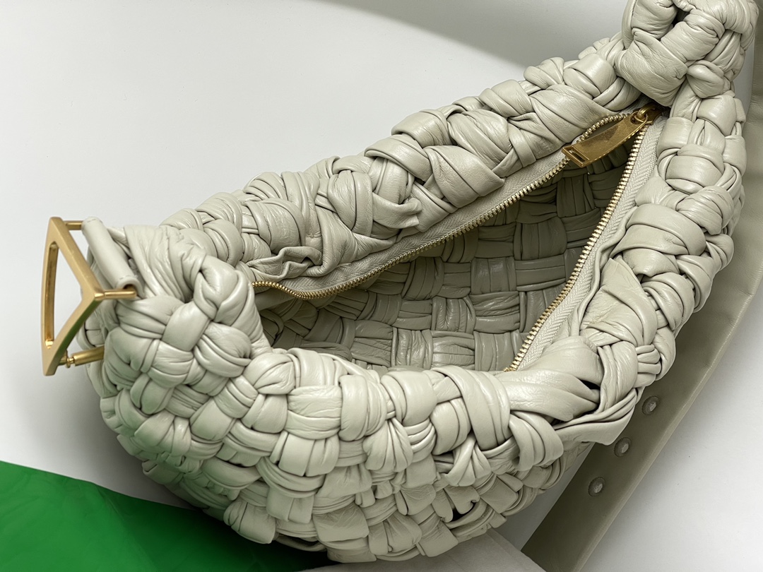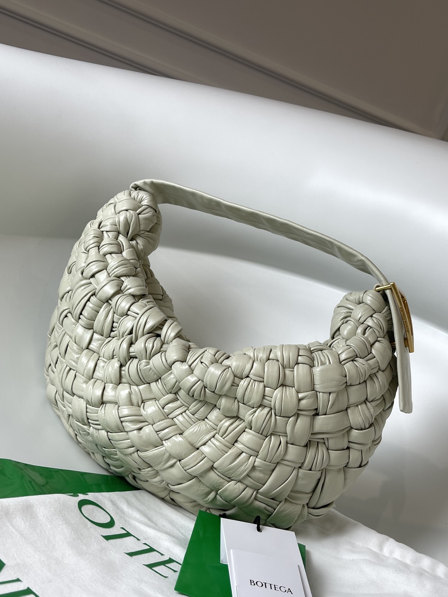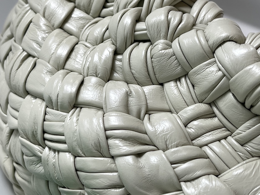 보테가의 바나나 손잡이 가방은 독특한 손편직 디자인이 돋보입니다.
