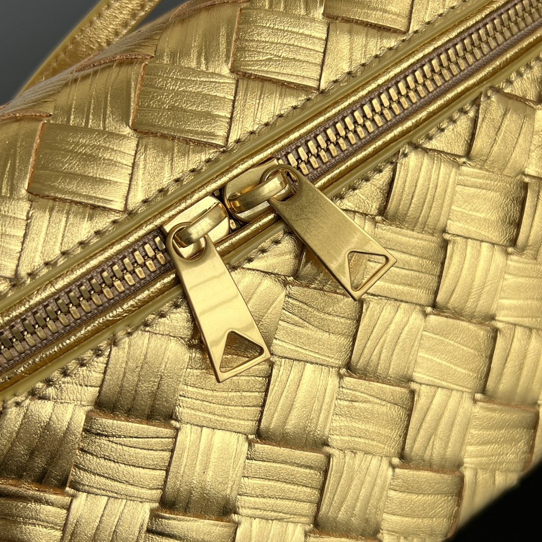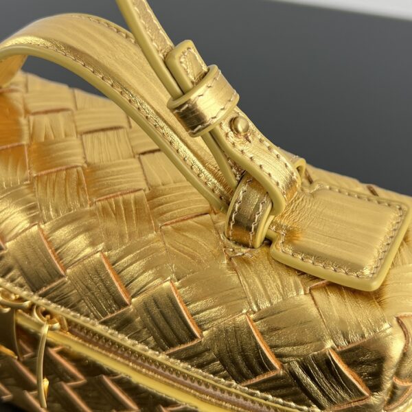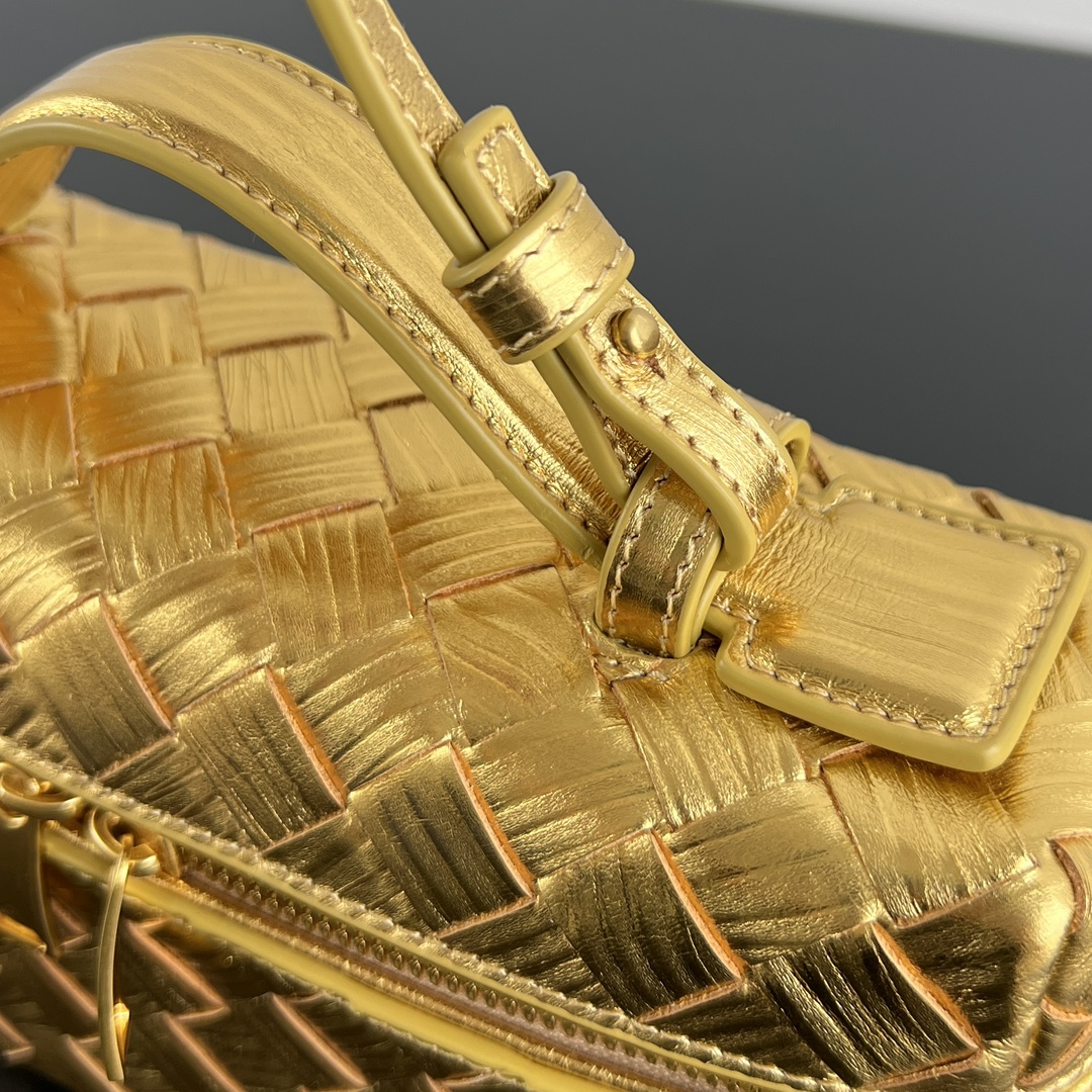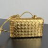 보테가의 바니티 케이스는 고급스러운 골드 컬러로, 어떤 자리에서도 눈길을 사로잡습니다.