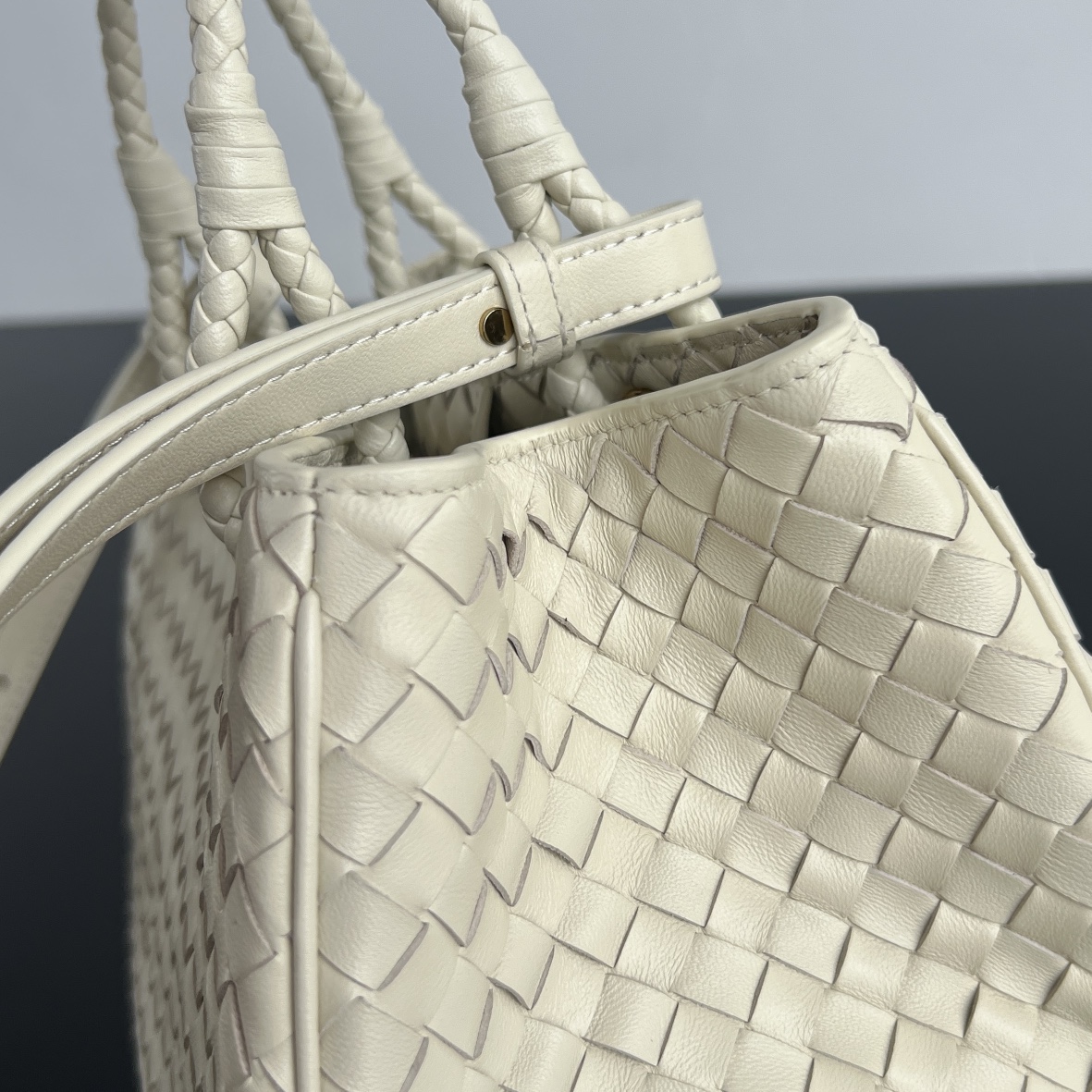 부드럽고 고급스러운 나파 양가죽으로 제작된 바스켓 핸드백입니다.