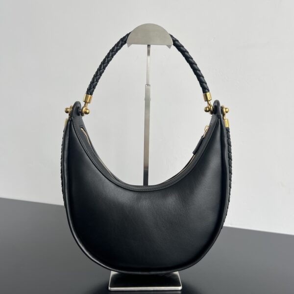 부드러운 소가죽으로 제작된 반달백입니다. 섬세한 질감이 돋보이며, 고급스러운 느낌을 줍니다.