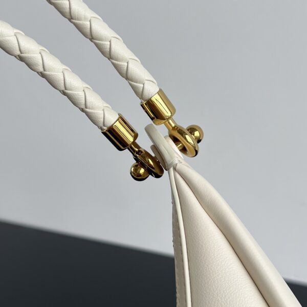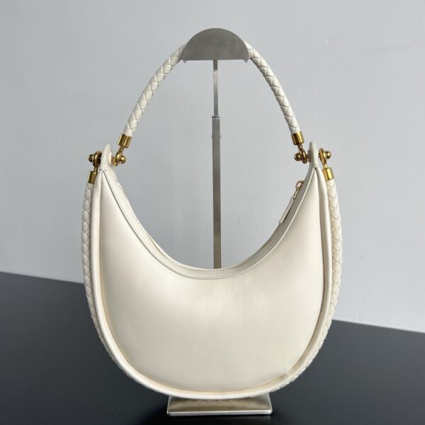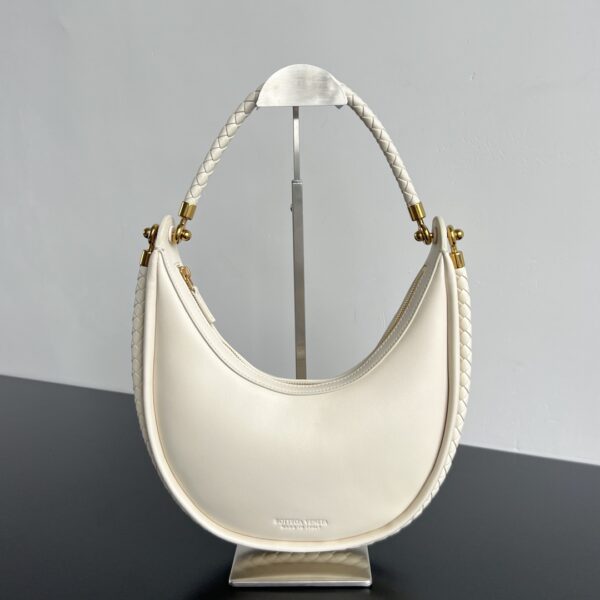 부드러운 양가죽으로 제작된 반달백입니다. 섬세한 질감이 돋보이며, 고급스러운 크림 색상이 매력적입니다.