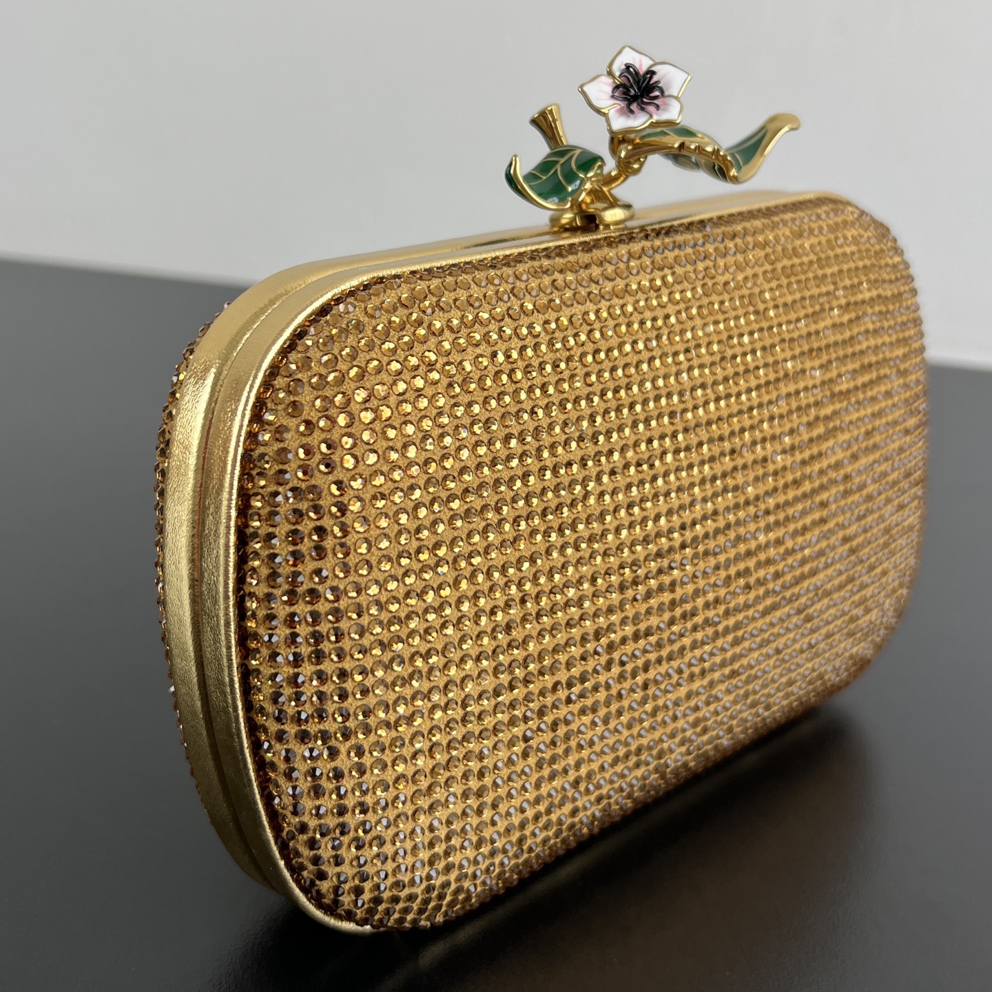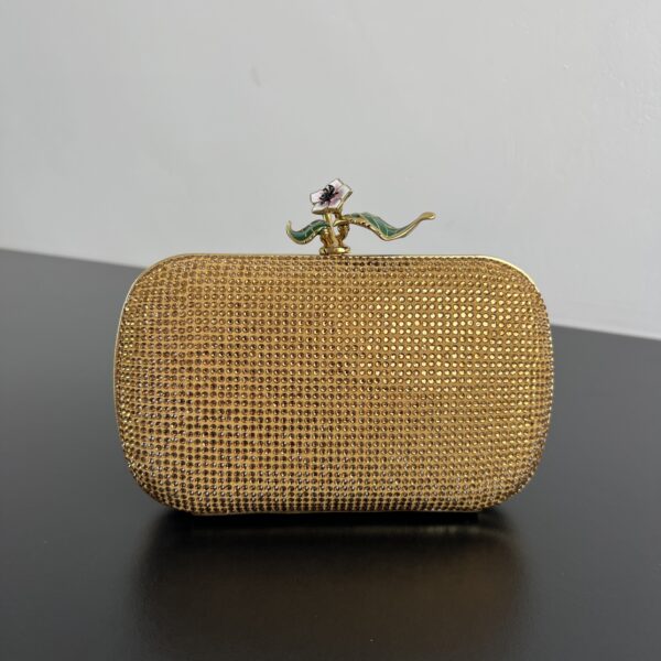 발광 디자인의 클러치로, 고급스러운 다이아몬드 장식이 특징입니다.✨