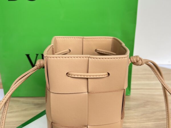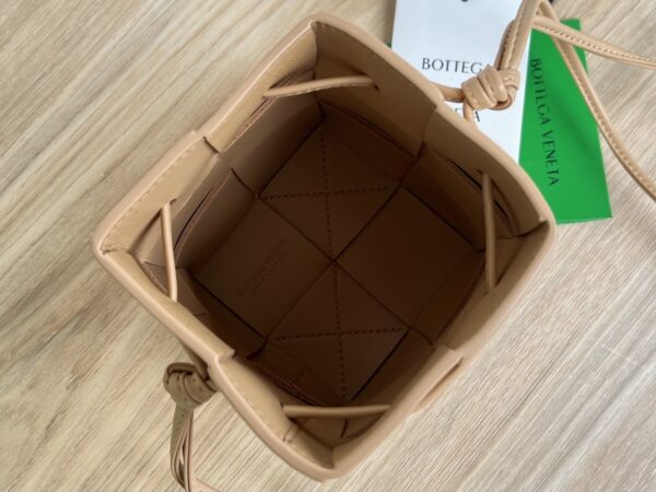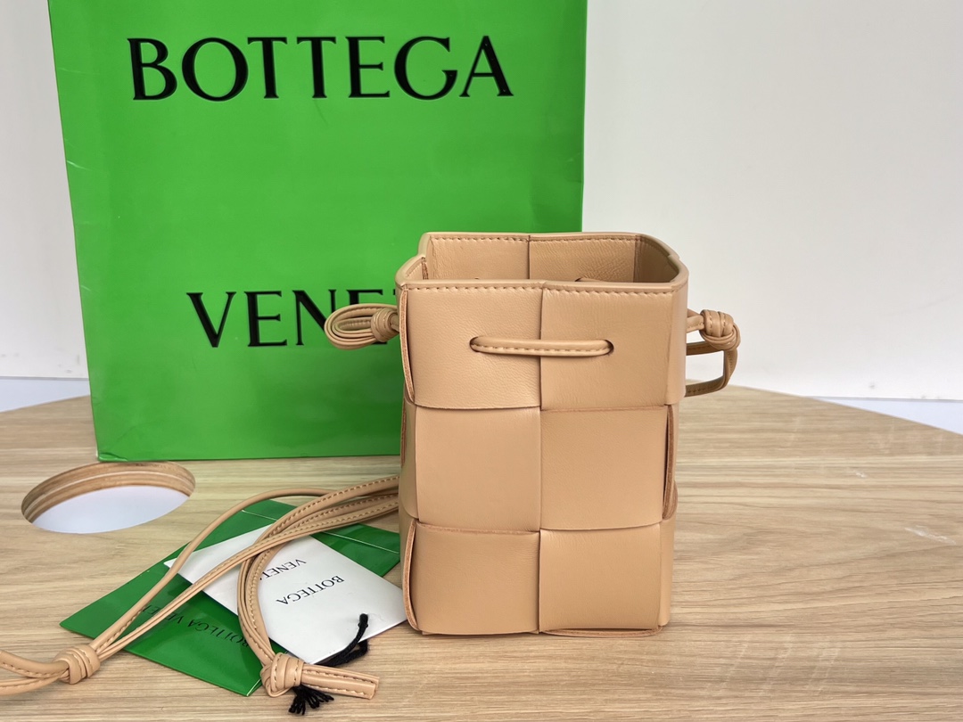 보테가의 새로운 버킷 크로스백은 클래식한 엮음 디자인을 현대적으로 재해석한 제품입니다.