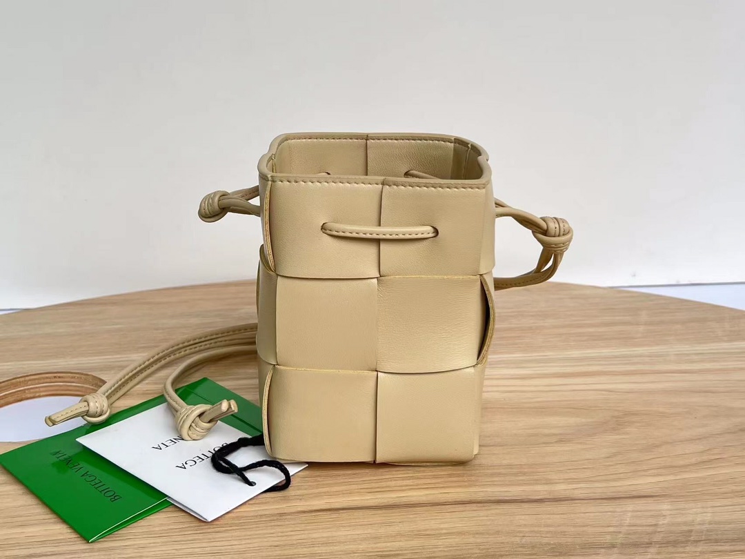 보테가의 새로운 버킷 크로스백은 클래식한 엮음 디자인을 현대적으로 재해석한 제품입니다.