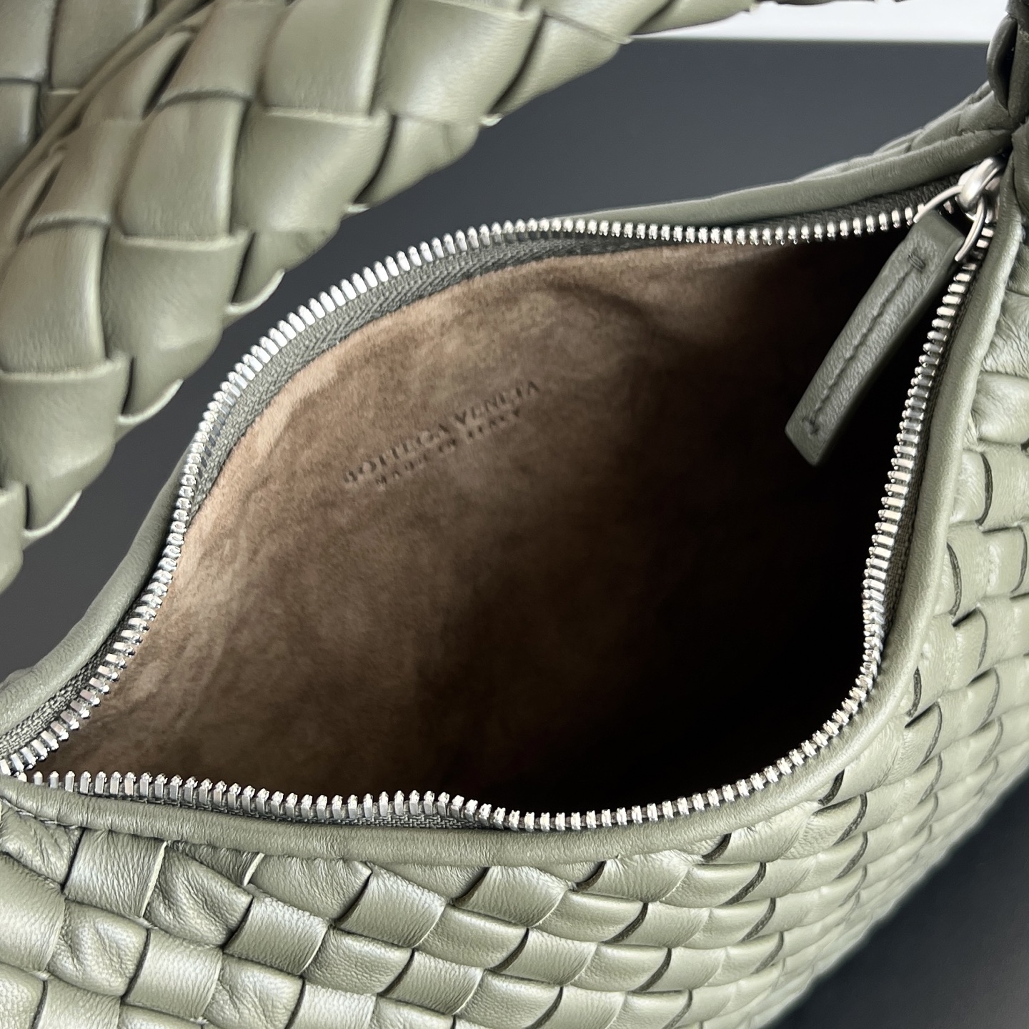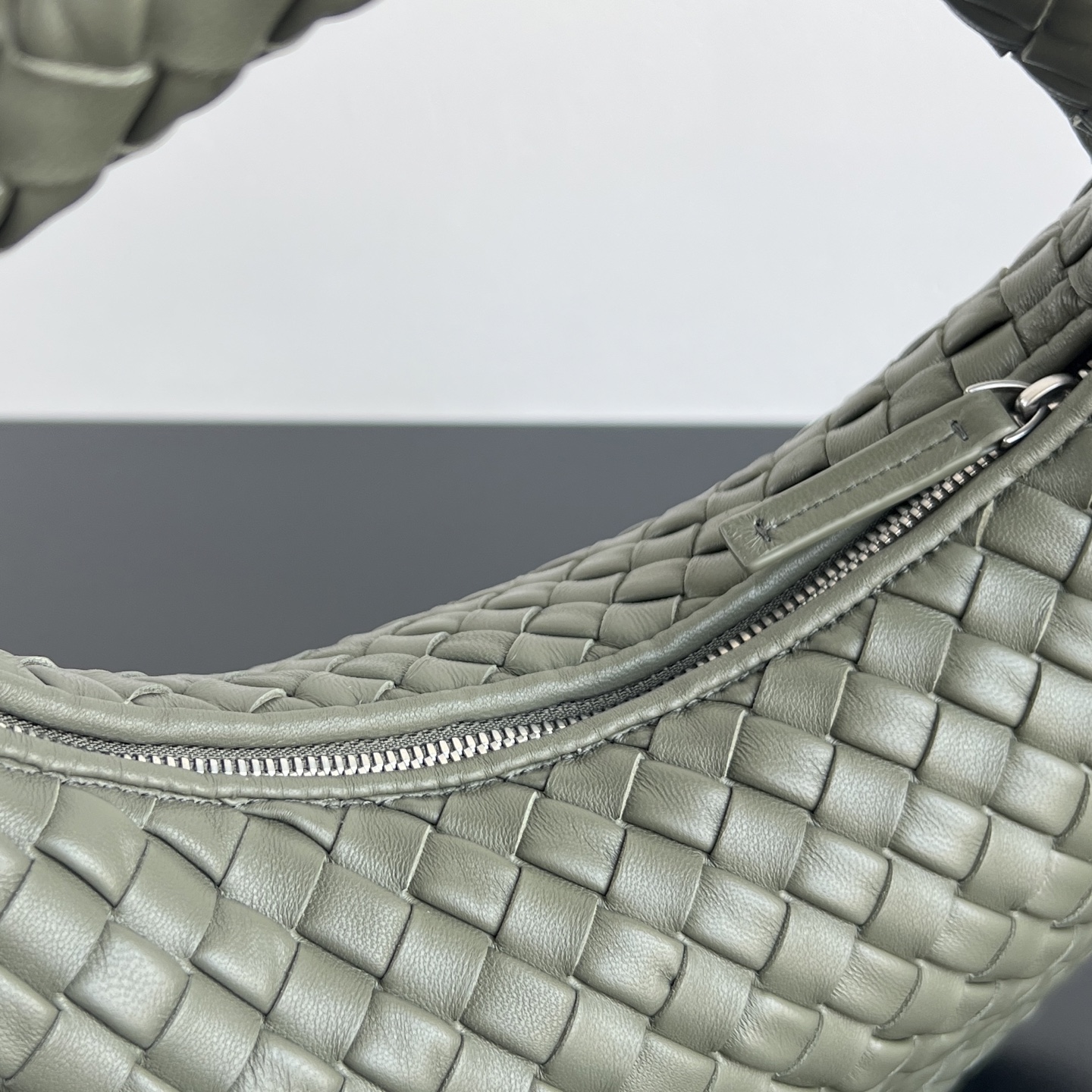 특유의 인트레치아토(직조) 기법으로 만들어져 부드럽고 탄력 있는 착용감을 제공합니다. 손잡이와 본체가 일체형으로 디자인되어 어깨에 걸치거나 손에 들고 다니기에도 편리합니다.
