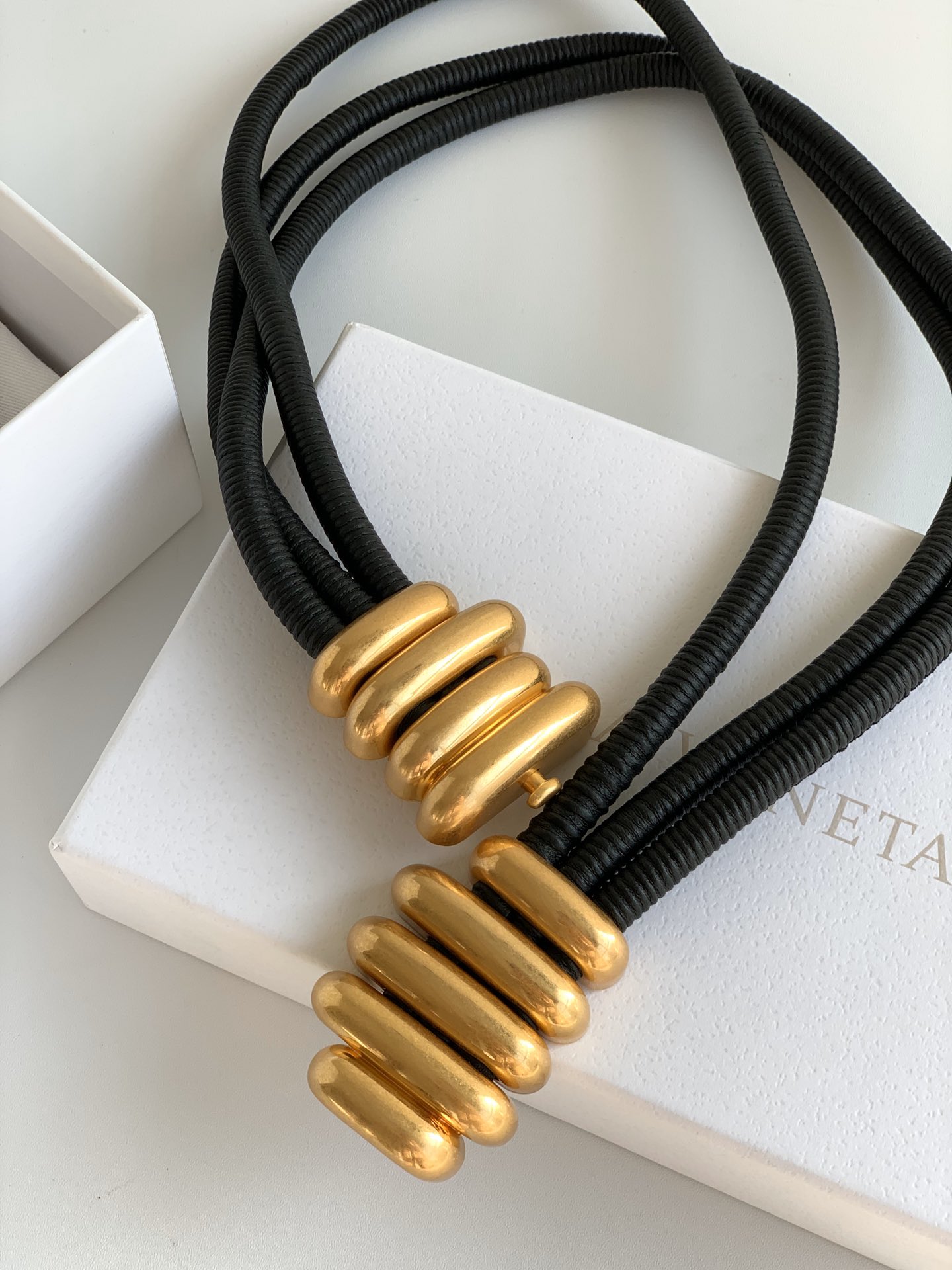 보테가 (징) 벨트 블랙 금속 장식 보테가 (징) 벨트 블랙 금속 장식