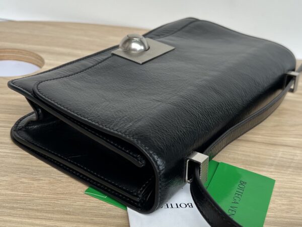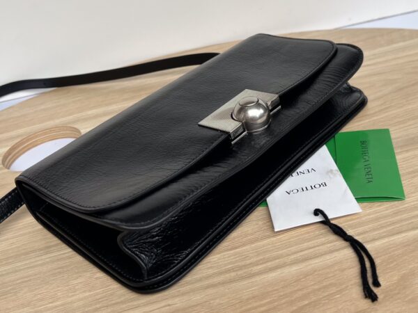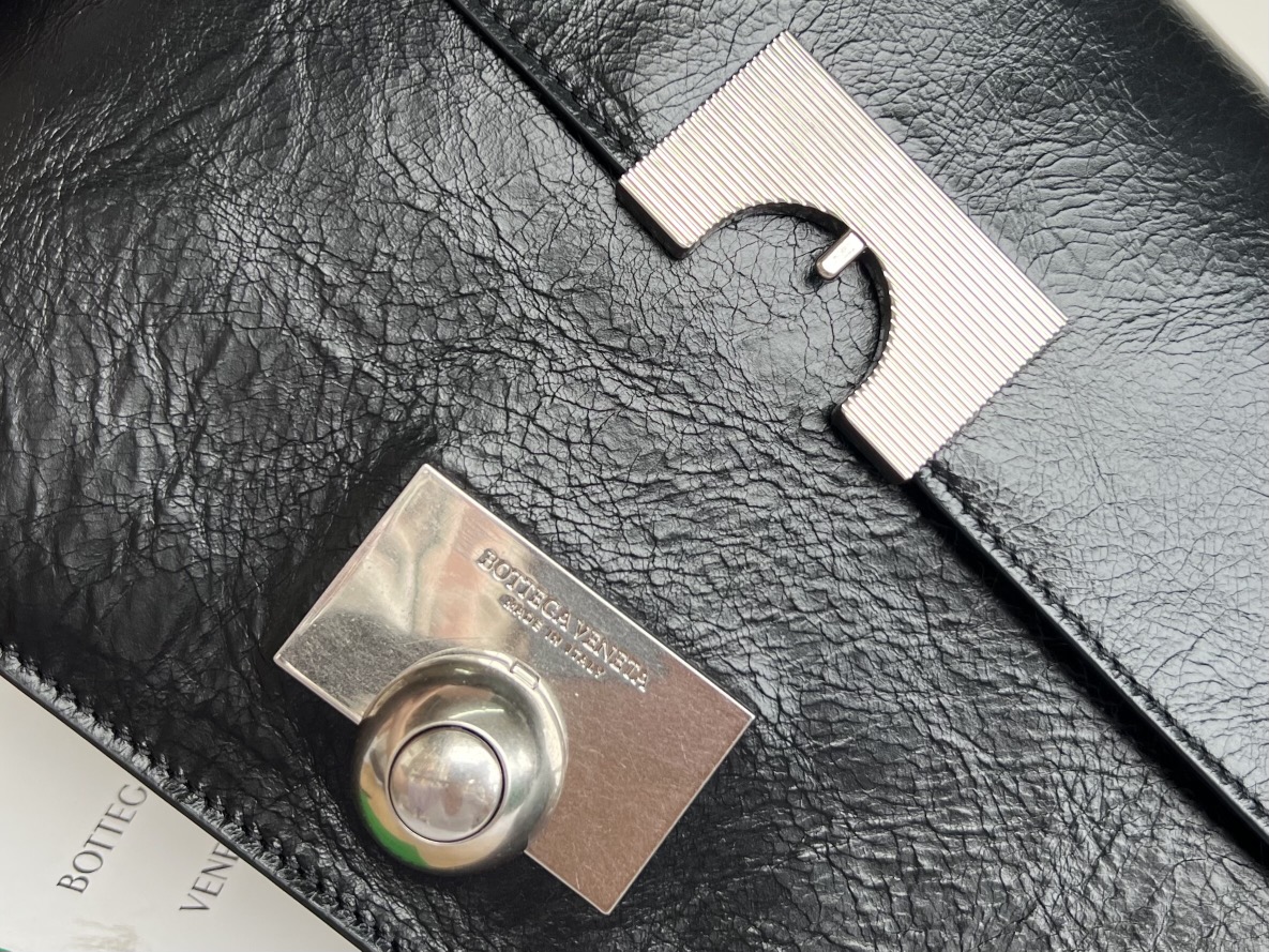 부드럽고 질감이 뛰어난 유연한 유광 소가죽으로 제작된 이 가방은 복고풍 디자인이 돋보입니다.