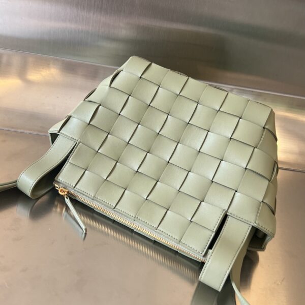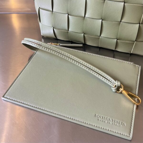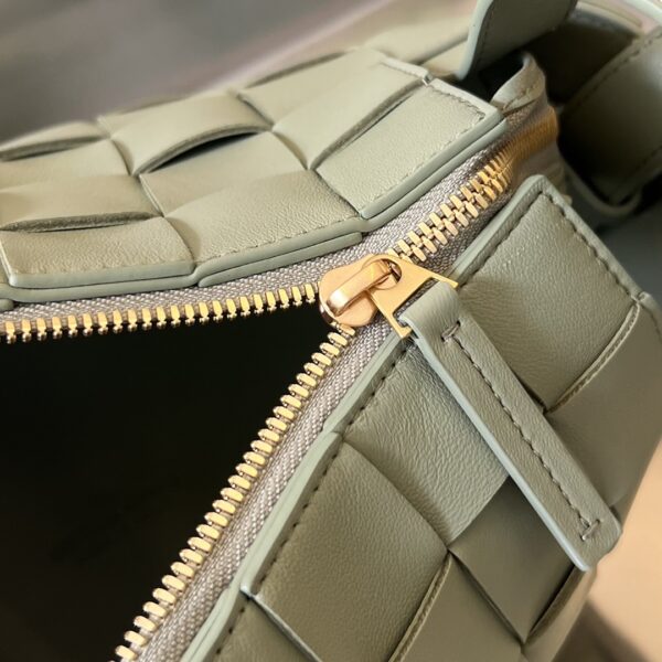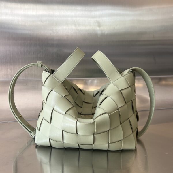 부드러운 소가죽으로 제작된 볼링백입니다. BV의 클래식한 엮음 디자인이 돋보이며, 고급스러운 느낌을 줍니다.
