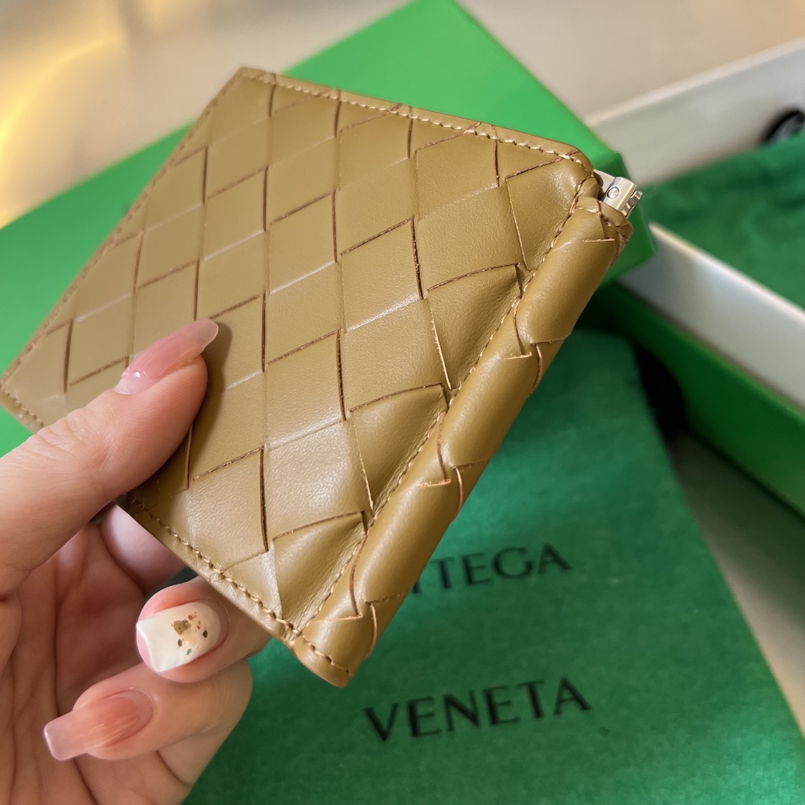 부드럽고 세련된 브레이드 디자인의 카드 지갑입니다.