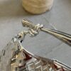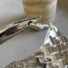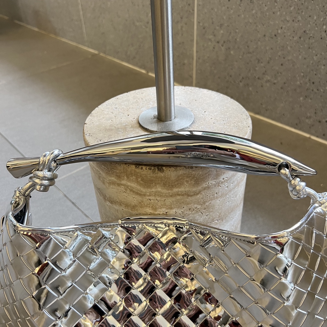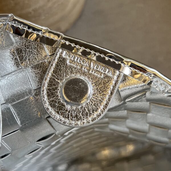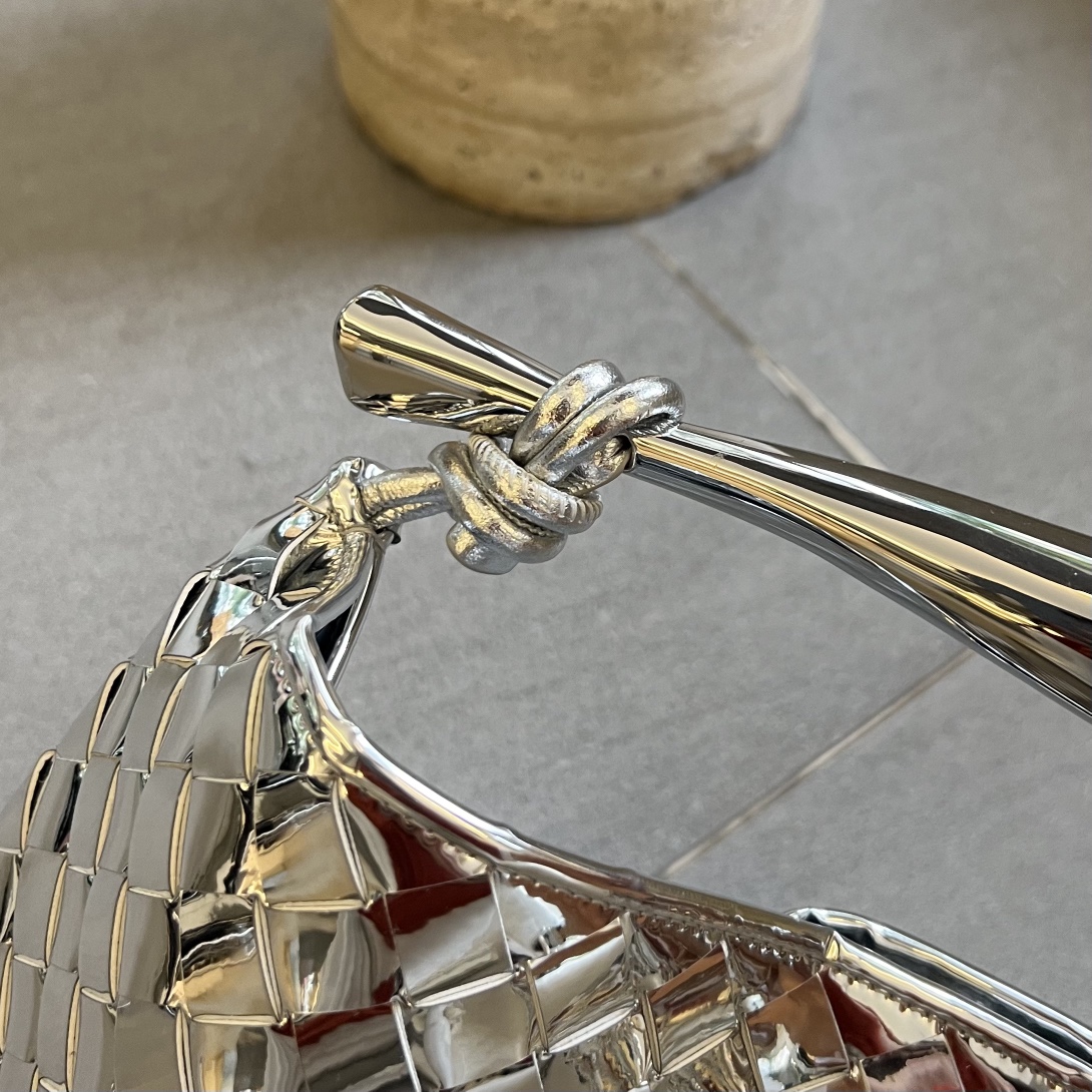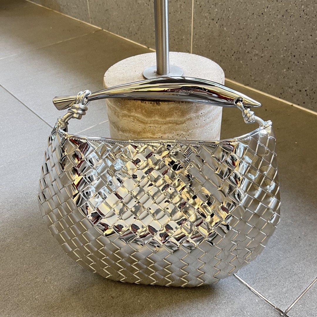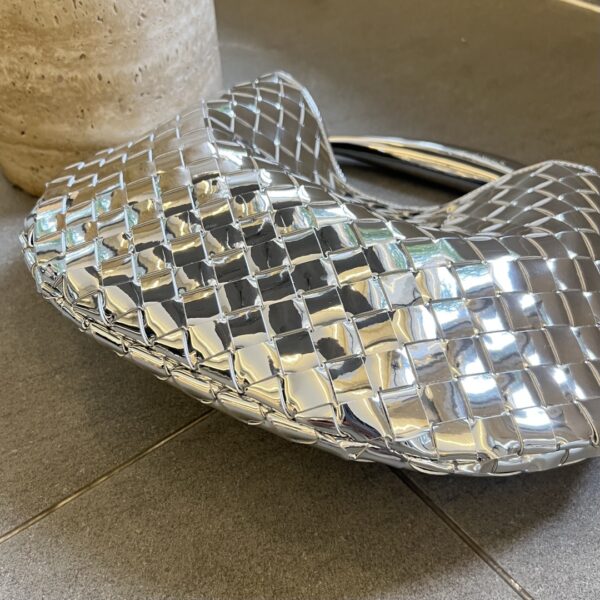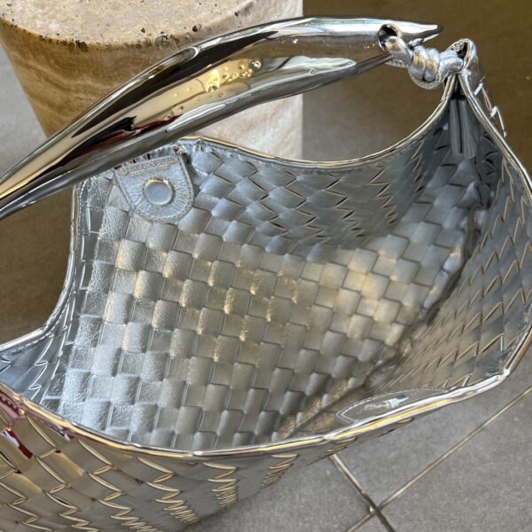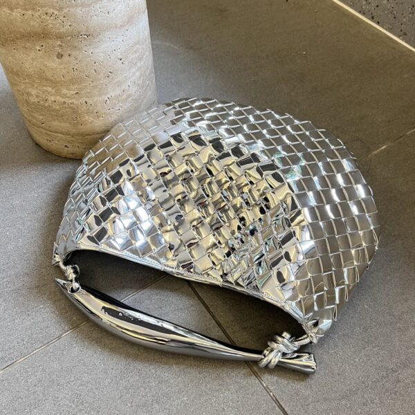 최고급 양가죽으로 정교하게 엮어져 있으며, 독특한 반달형 디자인이 매력적입니다. 금속 핸들은 클래식한 엮임과 결합되어 세련된 느낌을 더합니다.