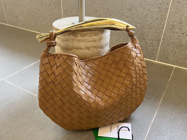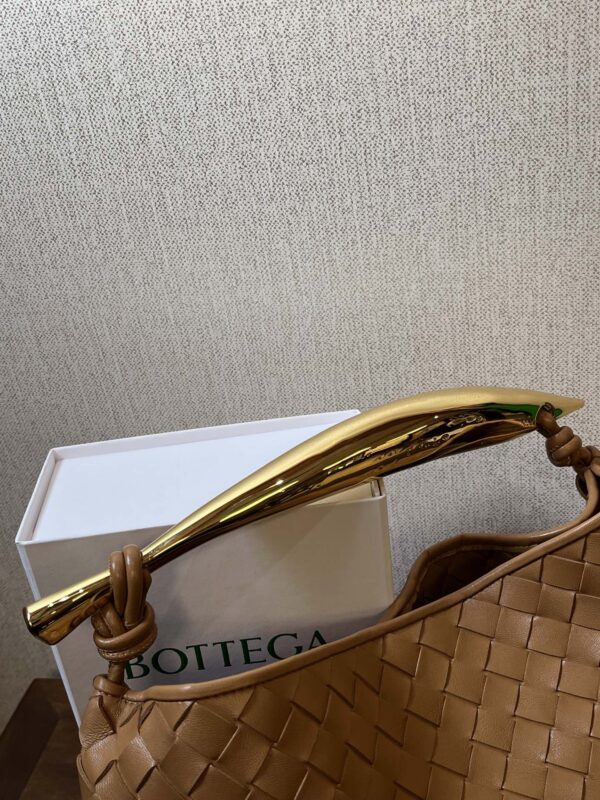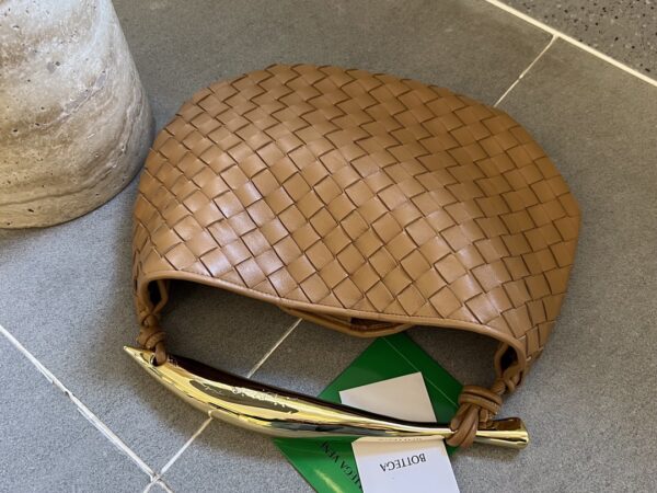 보테가의 사르딘 백은 우아한 반달형 디자인으로, 고급 양가죽으로 정교하게 제작되었습니다.