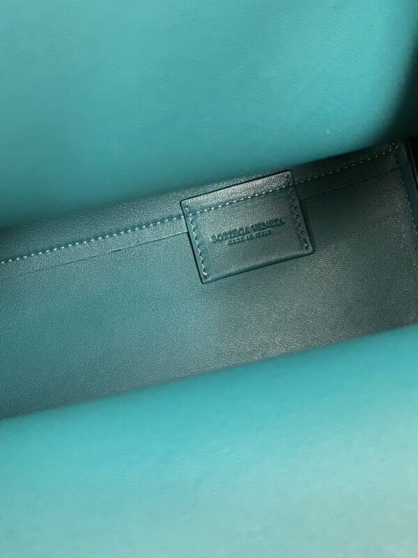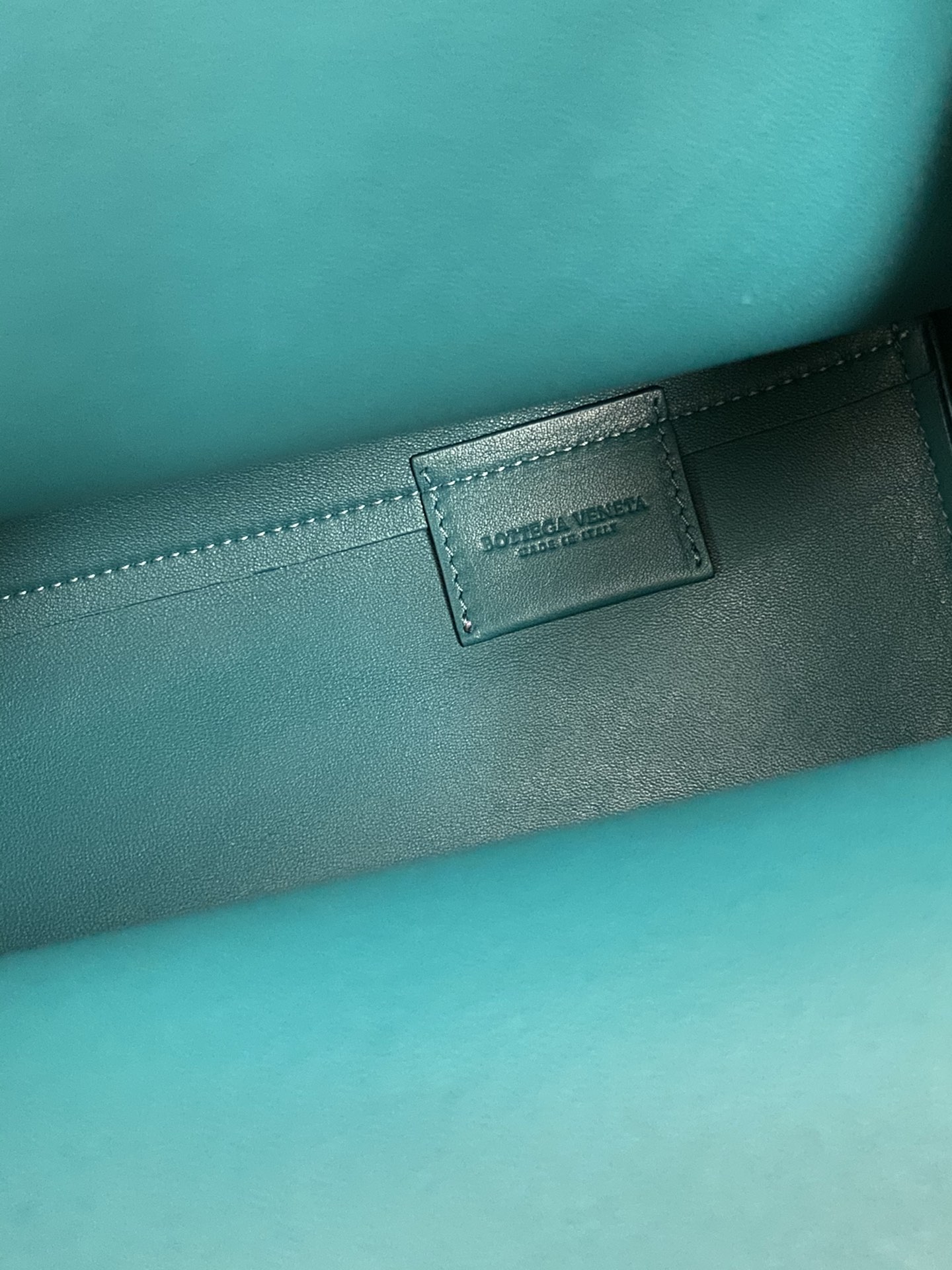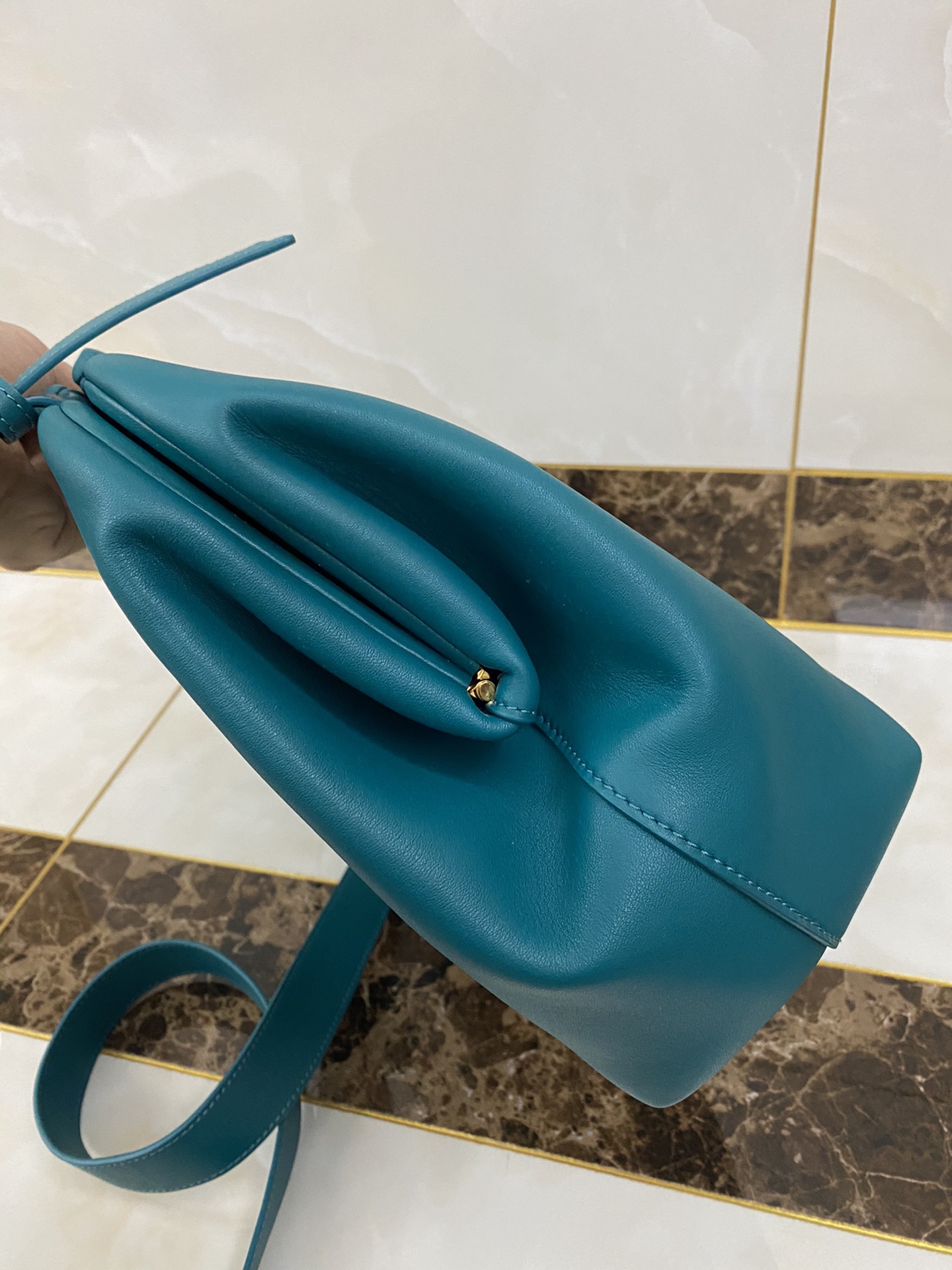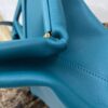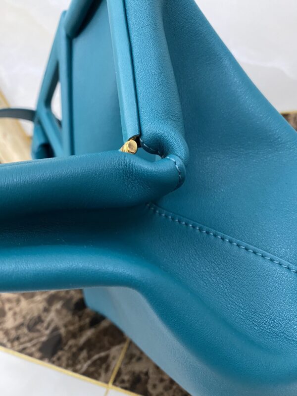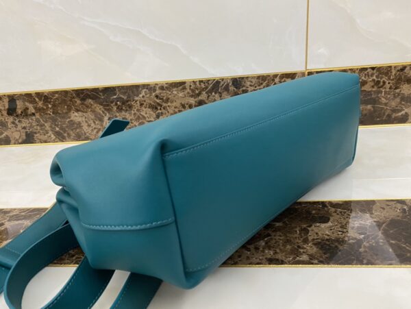 부드러운 파스텔 블루 컬러의 삼각형 손잡이백입니다.