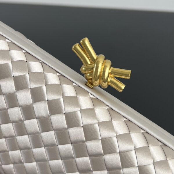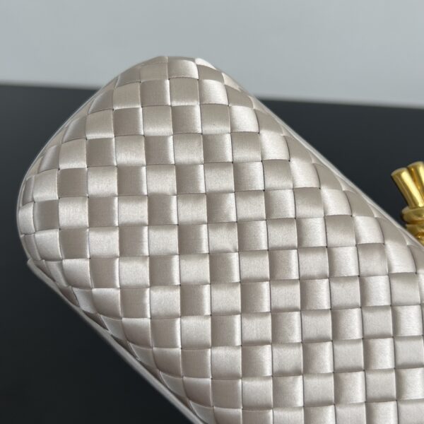 클래식한 실크 위빙 디자인이 돋보이며, 금속 손잡이가 포인트를 더해줍니다.