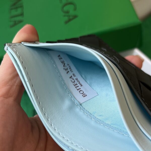 고급 소가죽으로 제작된 카드 지갑입니다. 부드러운 질감이 특징이며, 두 가지 색상이 조화를 이루어 세련된 느낌을 줍니다.