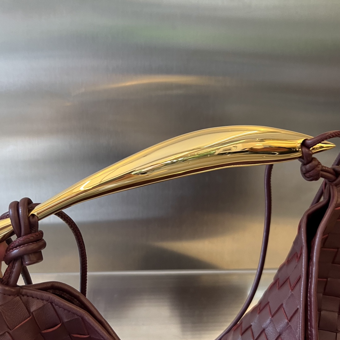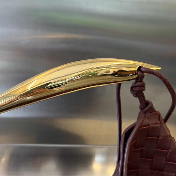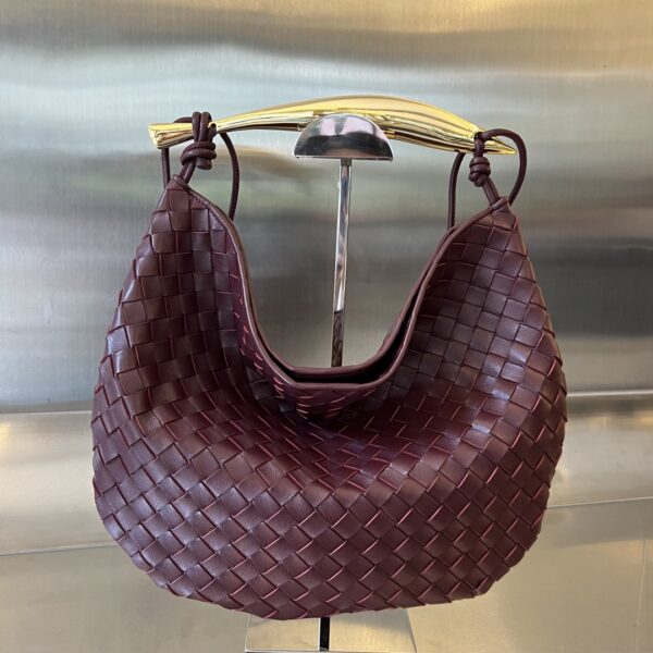 최고급 양가죽으로 제작되어 부드럽고 고급스러운 질감을 자랑합니다. 독특한 반달 형태와 클래식한 편직 디자인이 조화를 이루어 우아함을 더합니다.