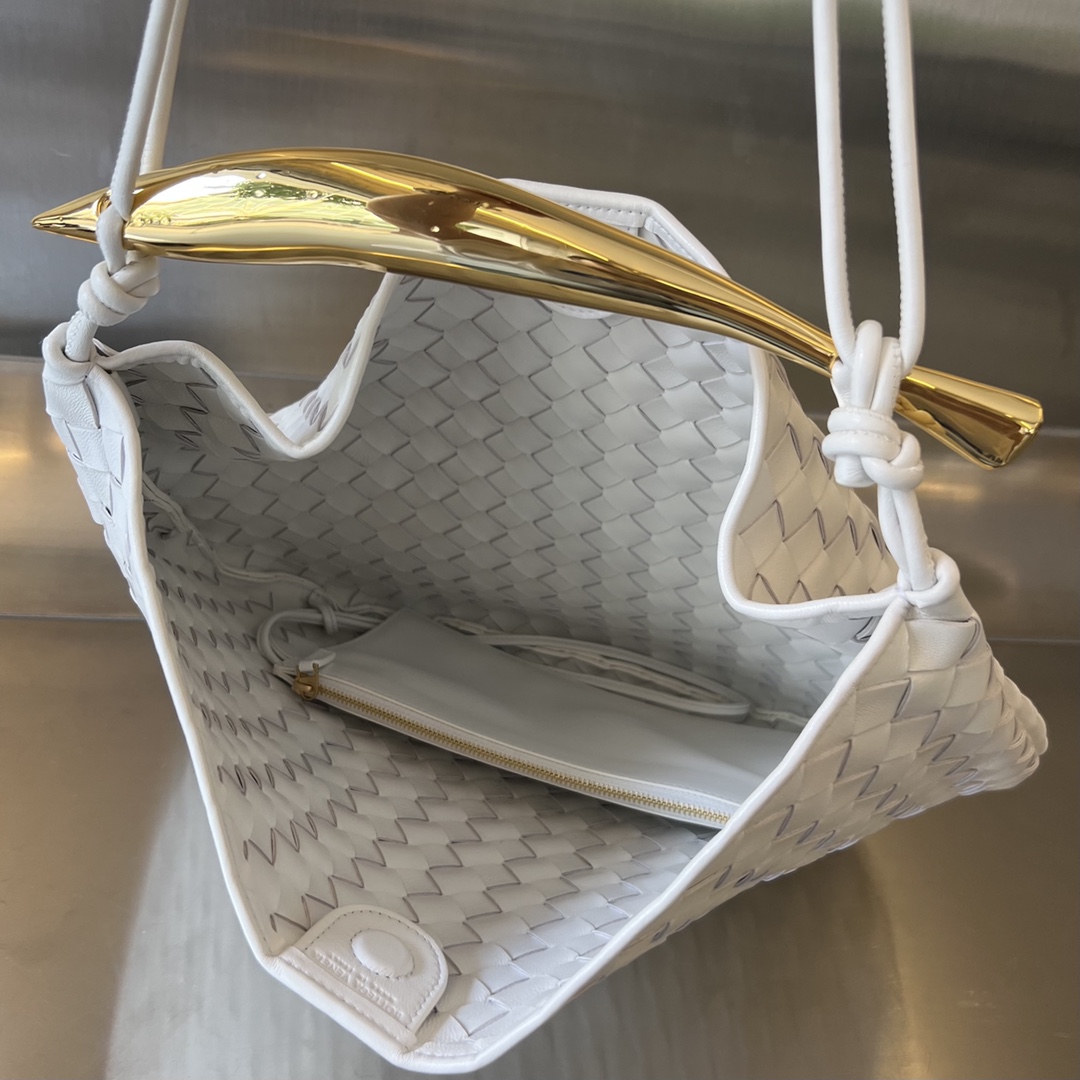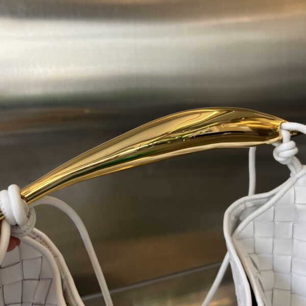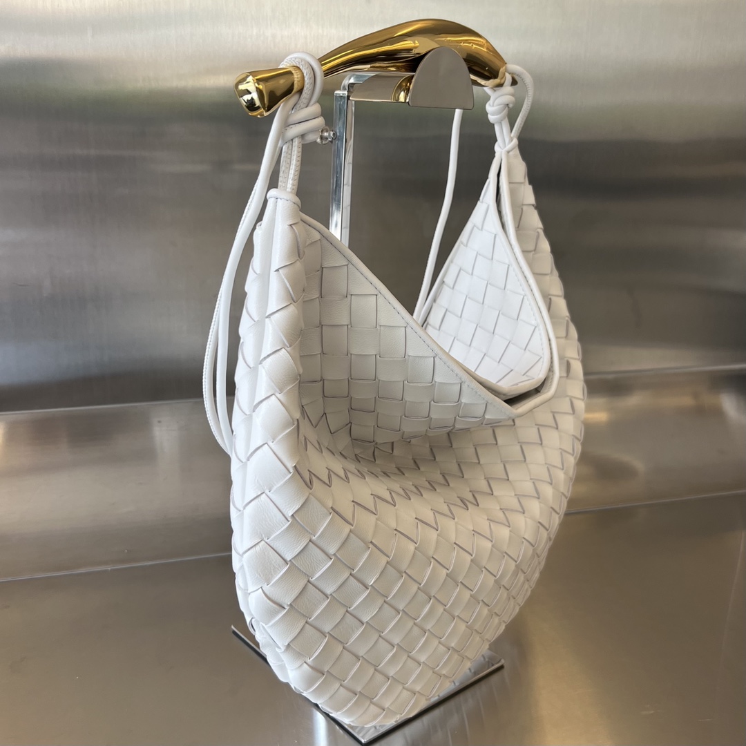최고급 양가죽으로 정교하게 엮어낸 반달 형태의 디자인이 특징이며, 과도한 장식 없이 우아함을 강조합니다.